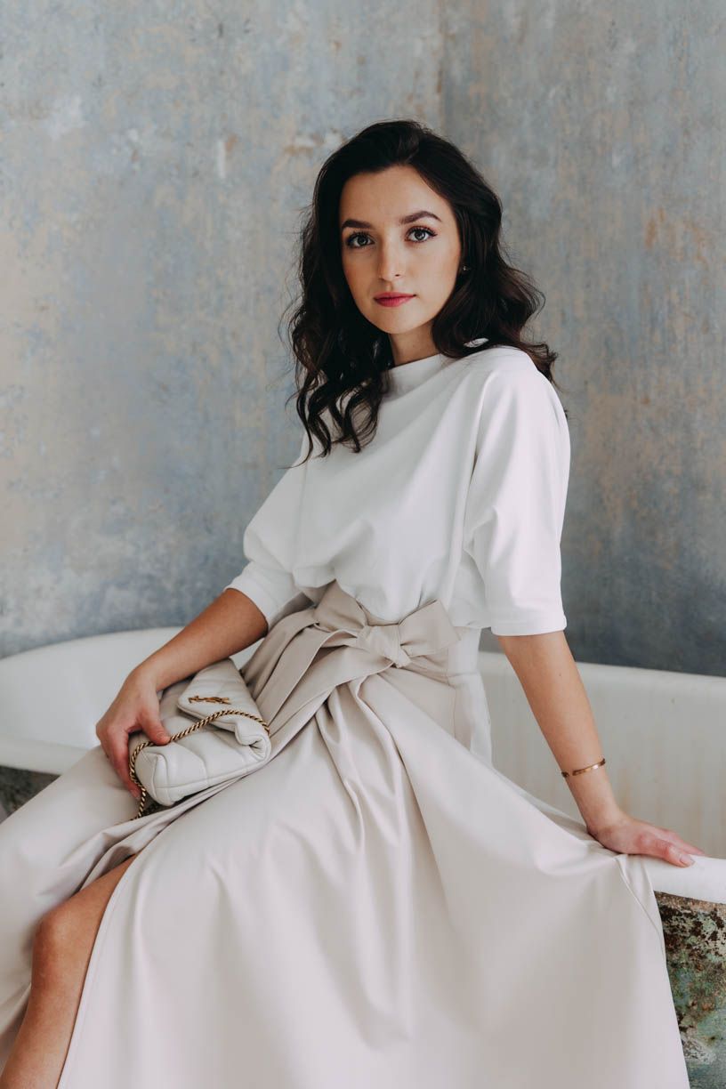 Že vám tohle spojení nesedí? Tak to pozor, ladies, tenhle outfit boří všechny zažité konvence o romantičkách. S velkolepou mašlí béžové zavinovačky Mawe vpředu a síťovaným prostřihem trička Tembea na zádech totiž způsobíte poprask mezi všemi, kdo se ocitnou ve vašem dosahu. Díky nude barvám vykouzlíte jemný, romantický a svěží look, zatímco originálními střihy těchto dvou kousků zase uhranete každé módní kritičce. I kritikovi – než se z něj stane váš obdivovatel… Nebojte se nude barev. Jsou tuze trendy!