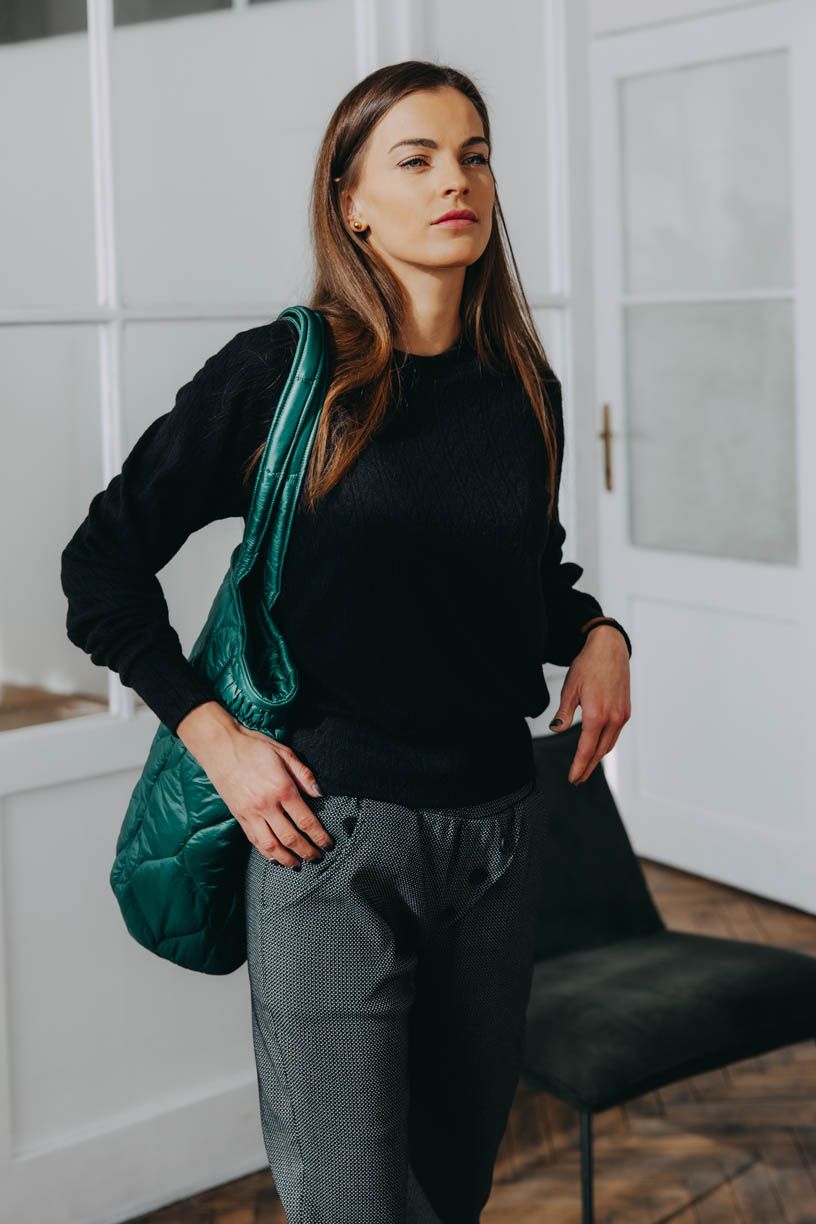 Kalhoty Reece v moderní culottes délce, lehce oversized svetřík Ama v minimalistické černé, velkolepá taška Vatusia v temně zelené. Tři ingredience, které společně vytvoří naprostou stylistickou symfonii. Těžko budete hledat větší pohodlí, než v tomto outfitu, kterým prolétnete celý den bez zastavení a bez ztráty kytičky. Té módní, samozřejmě. Protože tohle je pořádně trendy kombinace. Vykročte vstříc světu a řekněte okolí, kdo tady udává trendy…