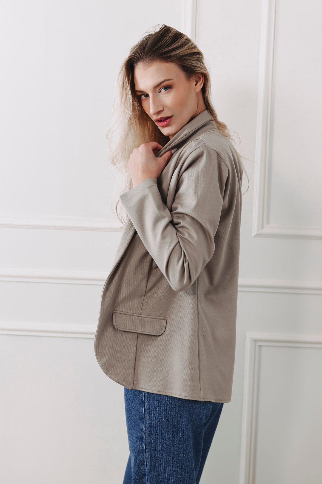 Jeho tajemství spočívá ve vrstvení. Základem je zavinovací top Zina Black, který rafinovaně zvýrazní dekolt a v kombinaci s ležérními džíny Nola Deep Jeans a béžovými lodičkami působí sexy a nespoutaně. Jakmile ale nahodíte delší krémové sáčko Amadu Creeme, získáte okamžitě elegantní a dotažený look, který budí respekt.