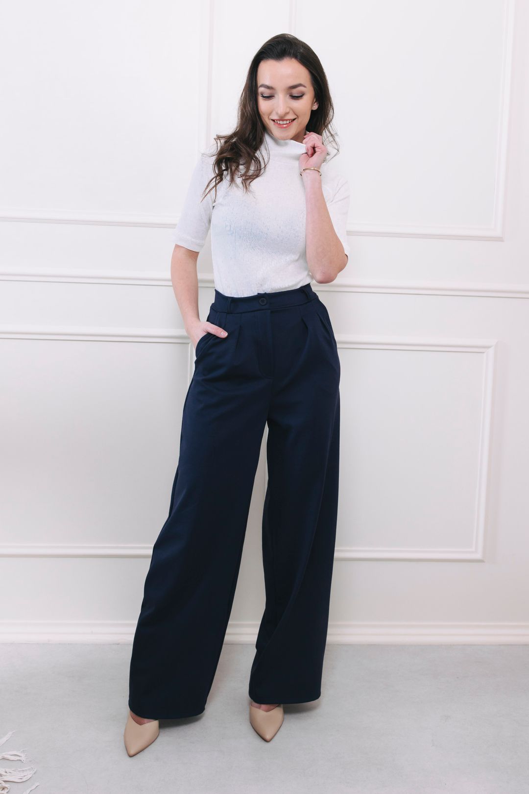 Hledáte outfit, který vyzařuje profesionalitu, ale přitom vás neškrtí? Naše sáčko a kalhoty Amadu v temně modrém odstínu jsou ztělesněním byznys elegance pro 21. století. V kombinaci se světlým roláčkem Azana Off White tvoří dokonalý kontrast, který vás rozzáří i v tom nejnáročnějším dni. Z ranní porady rovnou na pracovní večeři? Amadu vás doprovodí s lehkostí. Precizní střih drží formu, zatímco materiál vám dopřeje svobodu pohybu, o které se vám v klasickém kostýmku jen zdálo. Je to udržitelný základ šatníku, který nebudete chtít svléknout.
