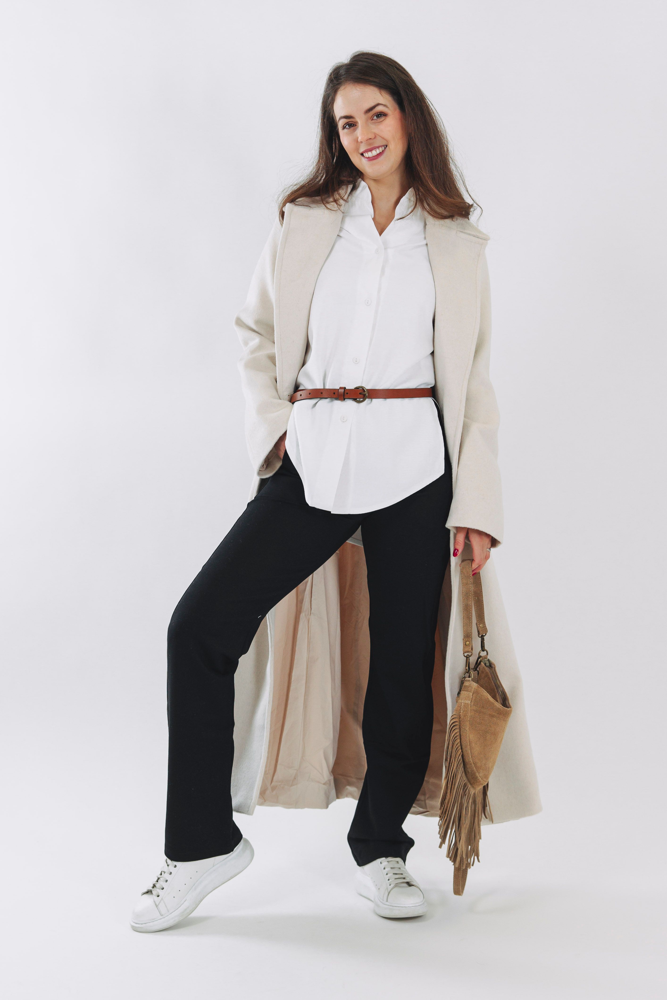 Objevte kouzlo outfitu, který bourá hranice mezi absolutním pohodlím a vysokou elegancí. Základem jsou naše oblíbené kalhoty Zen Thin Black – kousek, který milujete pro jeho neuvěřitelnou pružnost a schopnost přizpůsobit se každé postavě i příležitosti. Skvěle si rozumí s klasickou bílou košilí Tawia, která celému looku dodává svěžest a profesionální nádech. Tuto harmonickou souhru uzavírá náš maxi kabát Amisi Creeme. Jeho velkorysá délka a jemný smetanový odstín dodají vašemu outfitu punc luxusu a nepřehlédnutelnou siluetu. Ať už vyrazíte v teniskách na nákupy nebo v lodičkách na pracovní schůzku, v této kombinaci bestsellerů se budete cítit sebevědomě a pohodlně po celý den.