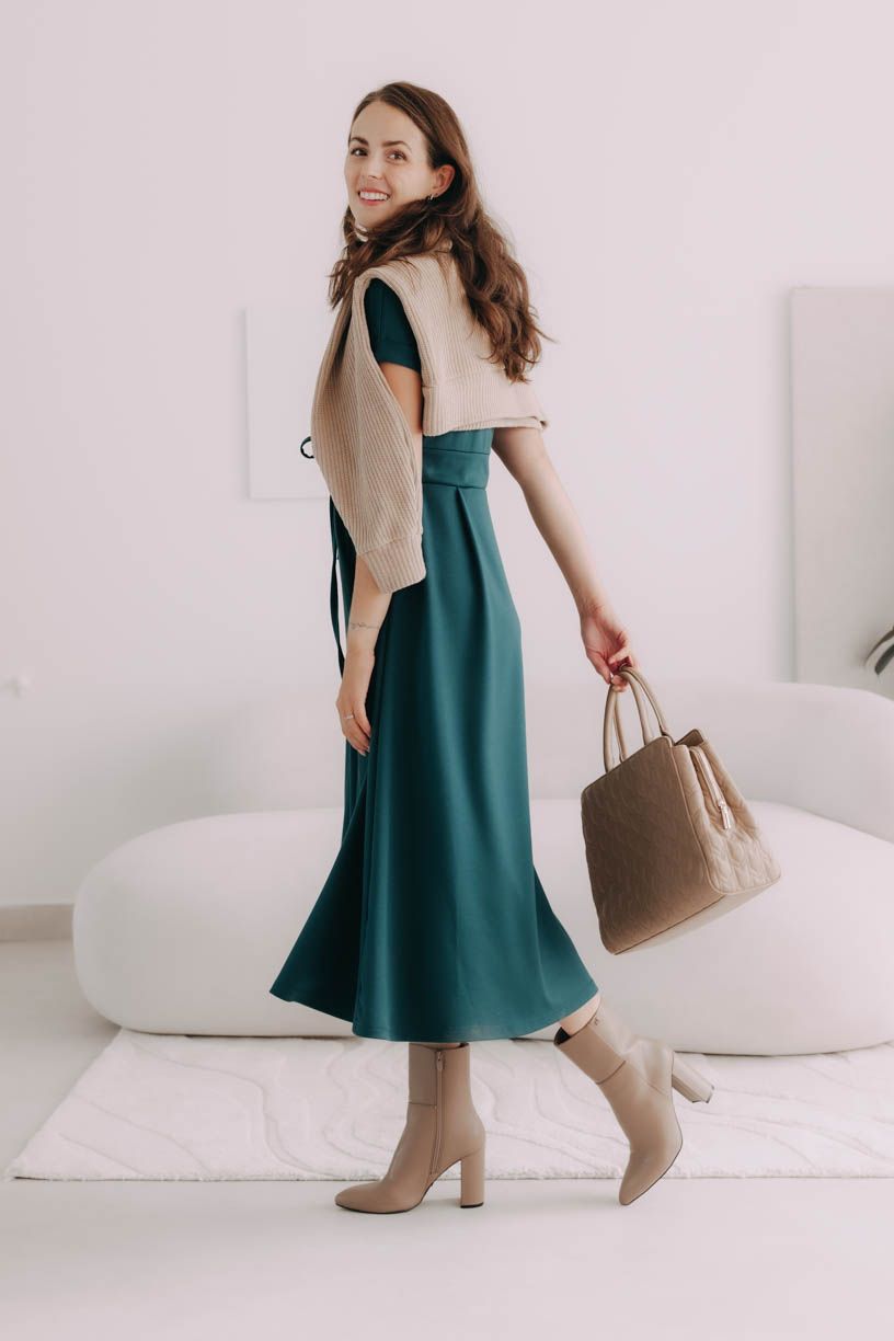 Když chcete vzdát hold přírodě, ještě to nutně neznamená, že musíte obléknout outdoorové kalhoty a bundu. V tomto křehkém outfitu se budete cítit sofistikovaně, půvabně a velmi žensky. Zároveň bude všem okolo jasné, že s módní kombinatorikou jste zadobře. Šaty Audrey milují už tisíce Bugaček. Jejich benefit je snad ve všem – materiálu, střihu a samozřejmě i krásné temně zelené barvě. A protože i příroda je plná kontrastů, nemusíte se bát nějakého faux pas, když k nim zvolíte světlé doplňky. Svetr Dunia vás zahřeje, ale zároveň dotáhne tenhle outfit k dokonalosti. Obujte boty a popadněte kabelku tón v tónu a vydejte se okouzlovat svět svým nenuceným šarmem.