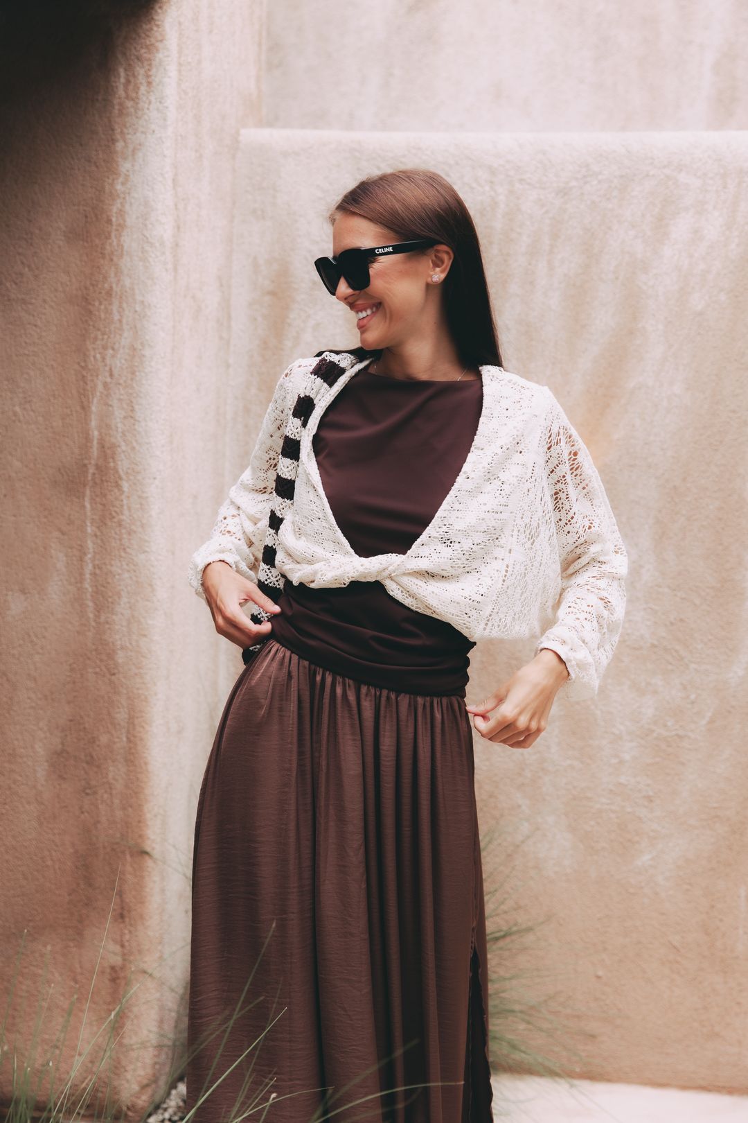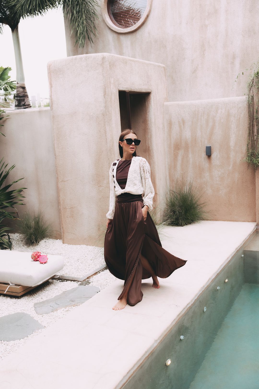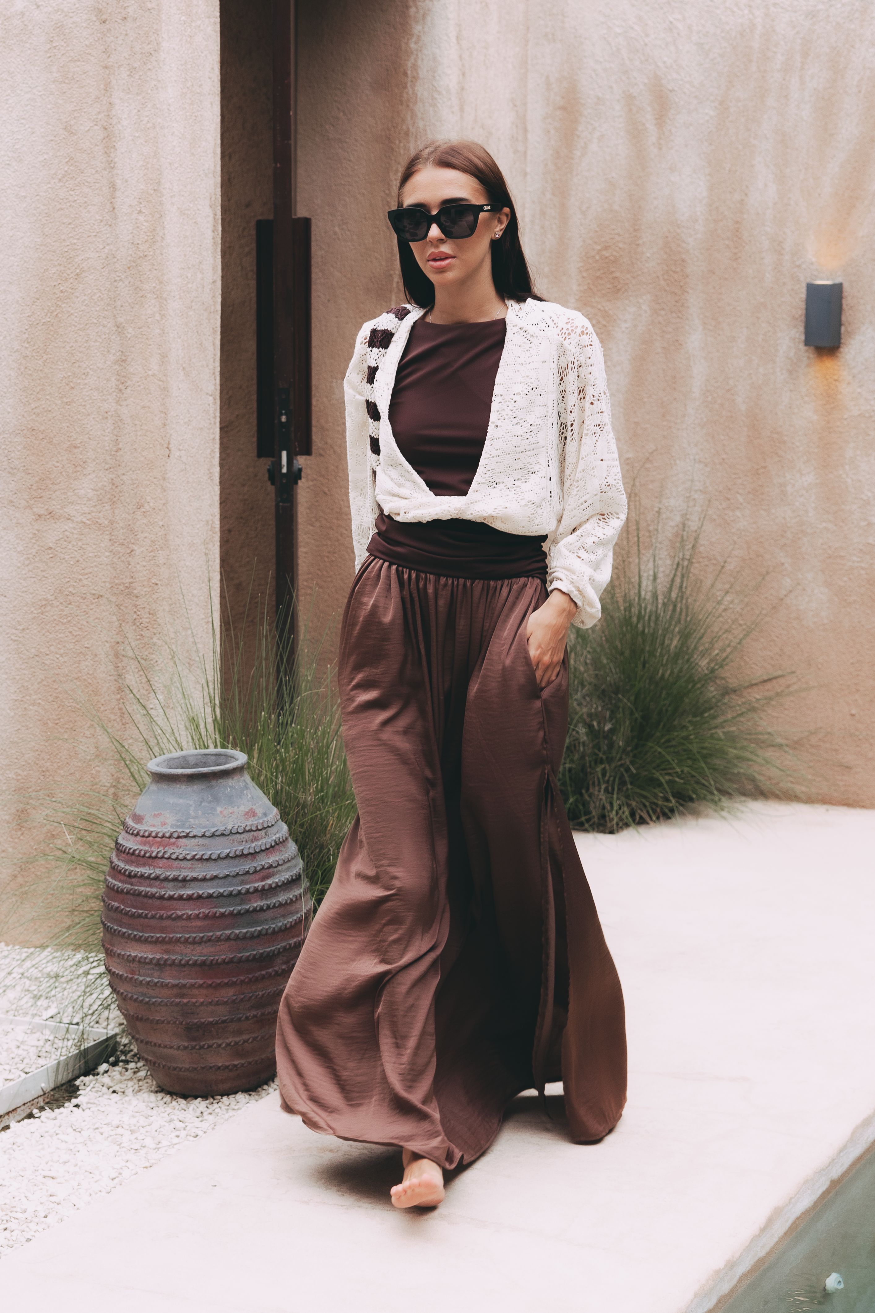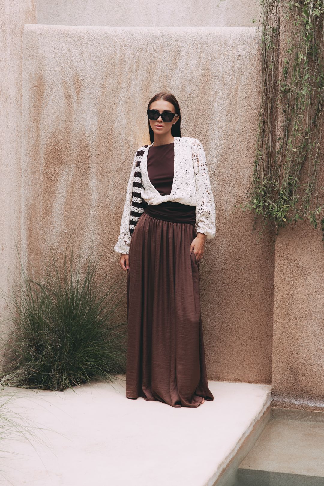 Tento outfit je naší srdeční záležitostí a čistou esencí nespoutaného Bali. Propojili jsme v něm luxusní maxi sukni Reta s rafinovaným topem Adia s odhalenými zády. Zkombinujte k nim i naši stylovou tašku Leya a jste připravena vyrazit do ulic. Vytvořili jsme tak harmonii, která vám dodá naprostou jistotu na důležité schůzce i při uvolněném nedělním brunchi. A když letní podvečer mírně ochladne? Stačí přes ramena nonšalantně přehodit top Atai.