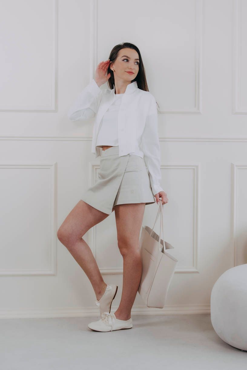 Outfit jako dělaný na letní víkend, který nepotřebuje přesný plán. Na ranní kávu, procházku městem i večer na terase – vždy si udržuje styl i v momentě, kdy se rozhodnete vydat jiným směrem. Bílá košile Tawia Short je kousek, který outfit odlehčí a dodá mu ten správný dovolenkový nádech, i když si zrovna jen odskočíte na oběd. Pod ní nenápadný top Aina v odstínu ecru, který se hodí ke všemu, ale nikdy nepůsobí nudně. A k tomu šortky Cali v béžové barvě – trochu pařížské, trochu praktické, ale hlavně vždy pohodlné. Na trh, na kávu tam na rohu nebo na nicnedělání pod slunečníkem. Minimalistický outfit, který dává prostor spontánnosti. Jako když si řeknete, že dnes nemusíte nikam – ale pokud přece jen přijde pozvánka, budete ready.