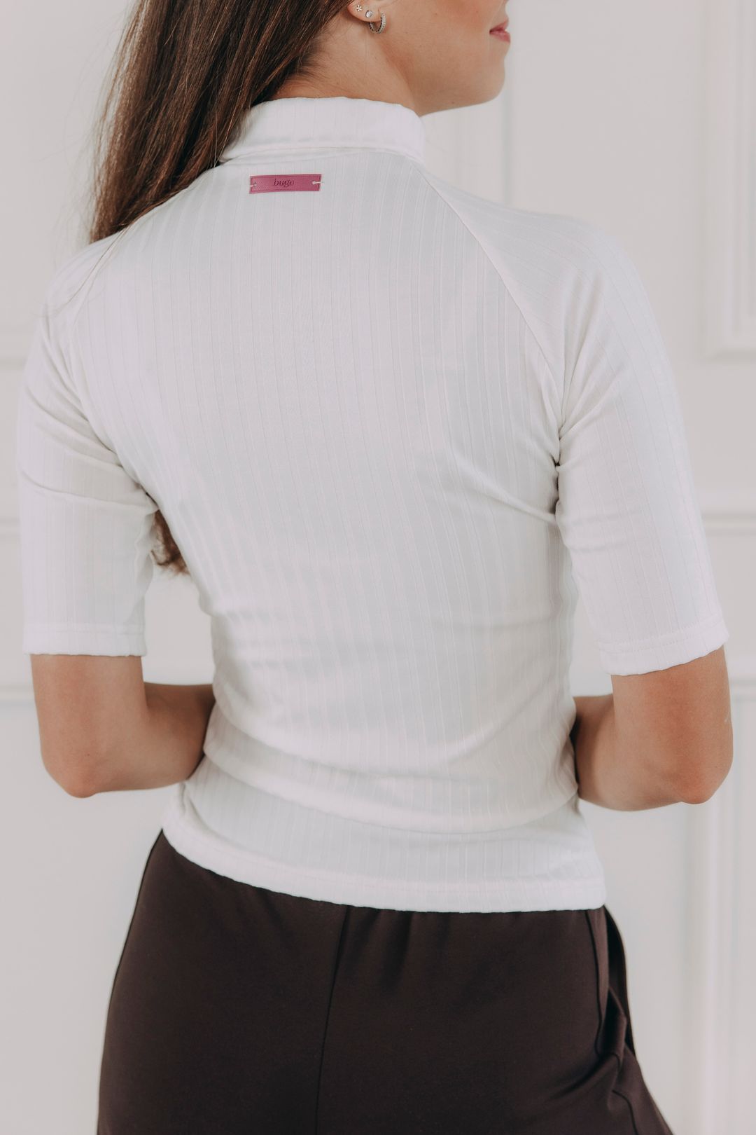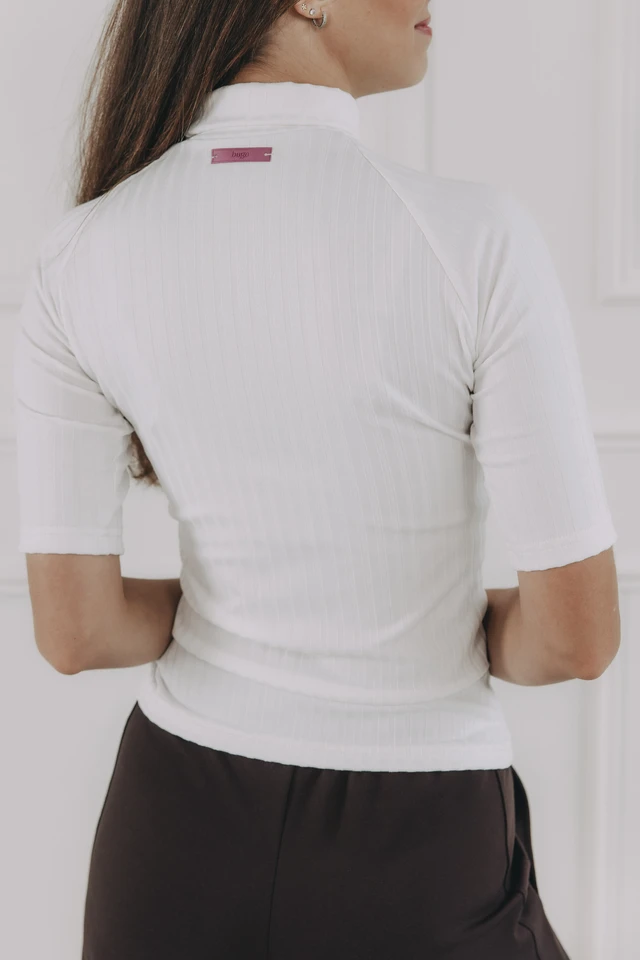 - Barva: Čistá bílá – nadčasový tón, ideální pro minimalistický šatník a snadné kombinování s jakýmkoliv sáčkem či kardiganem.