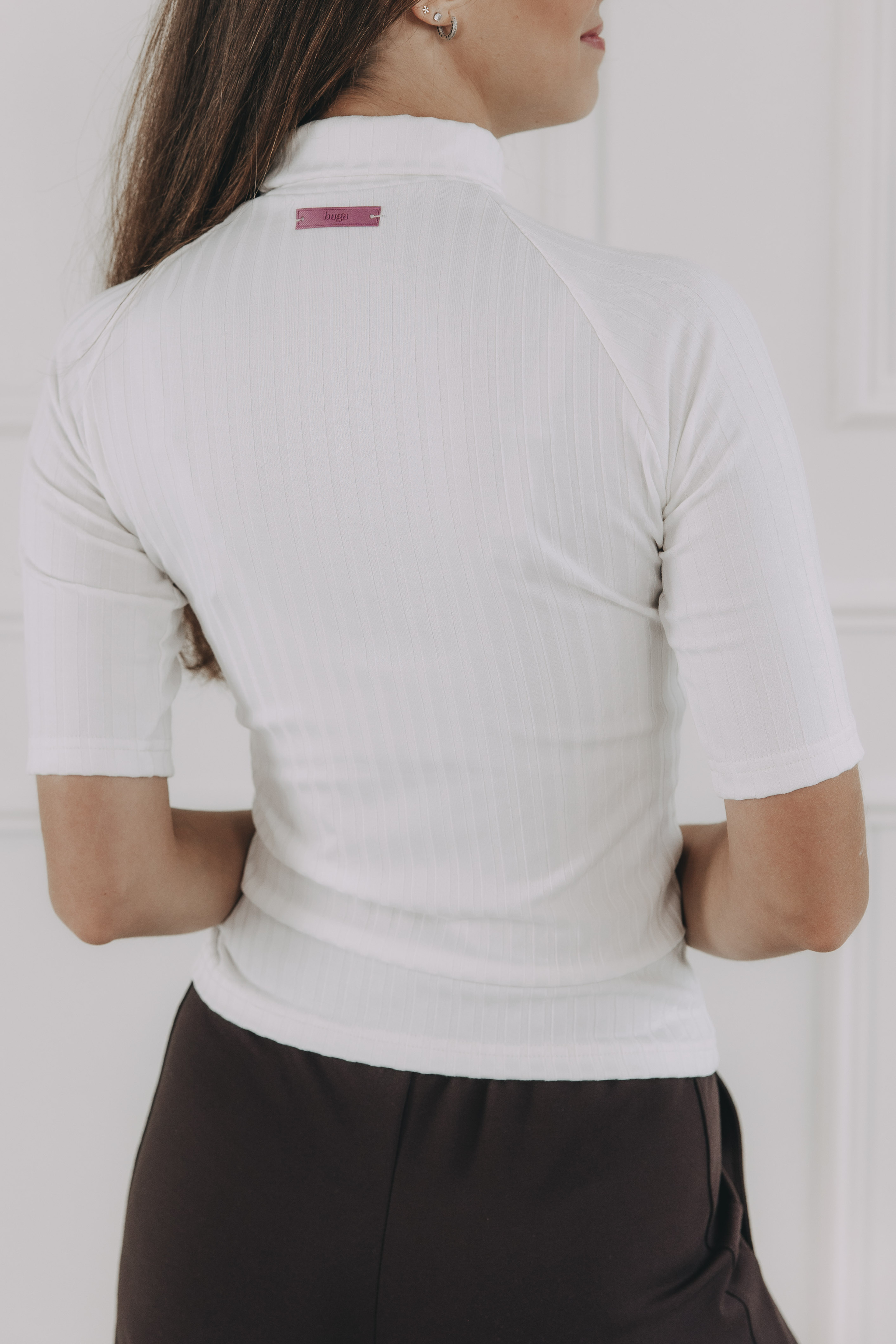 - Materiál: Je vyroben z kvalitního úpletu z bavlny s elastanem o vyšší gramáži (350 g/m2). Materiál je měkký, hřejivý a příjemný na dotek, zároveň si však drží tvar a krásně kopíruje siluetu. Ideální volba pro pohodlí i eleganci v jednom.