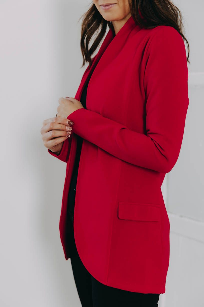 Klasický kousek šatníku v moderním hávu. Výrazné prodloužené sako Ali Red s fake kapsou je dílkem, který dokonale zapadne jakékoliv módní skládačky.