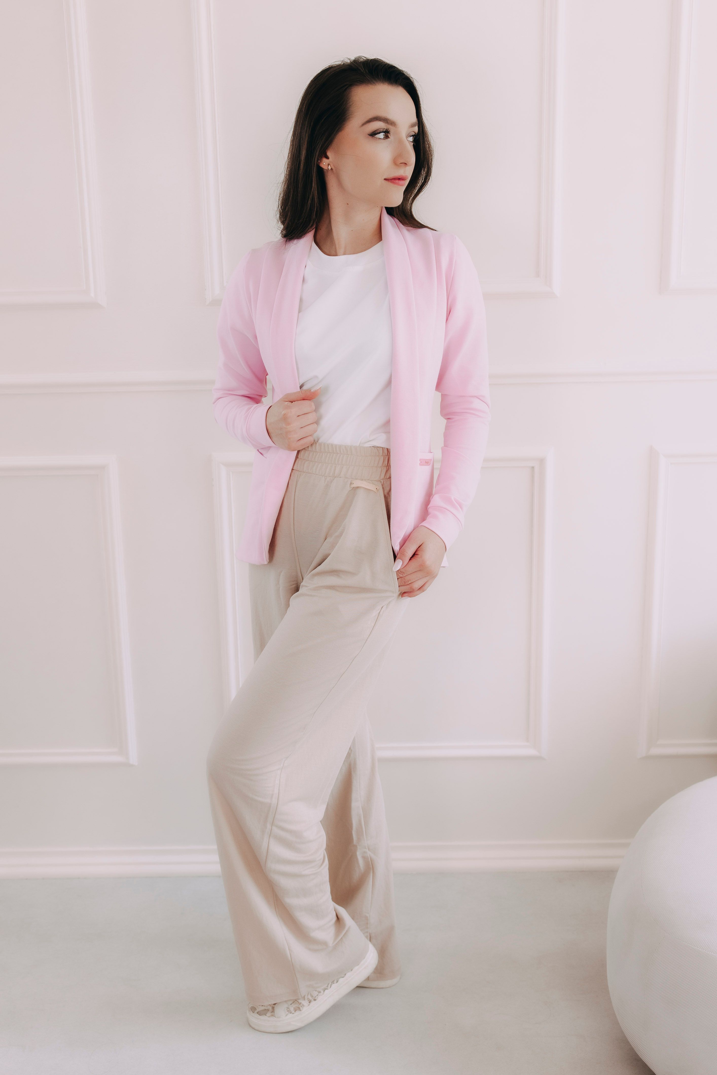Sako Ania z příjemné bavlny s troškou elastanu je univerzální a nadčasový kousek. Díky rovnému střihu a zaobleným koncům polichotí každé ženské postavě.