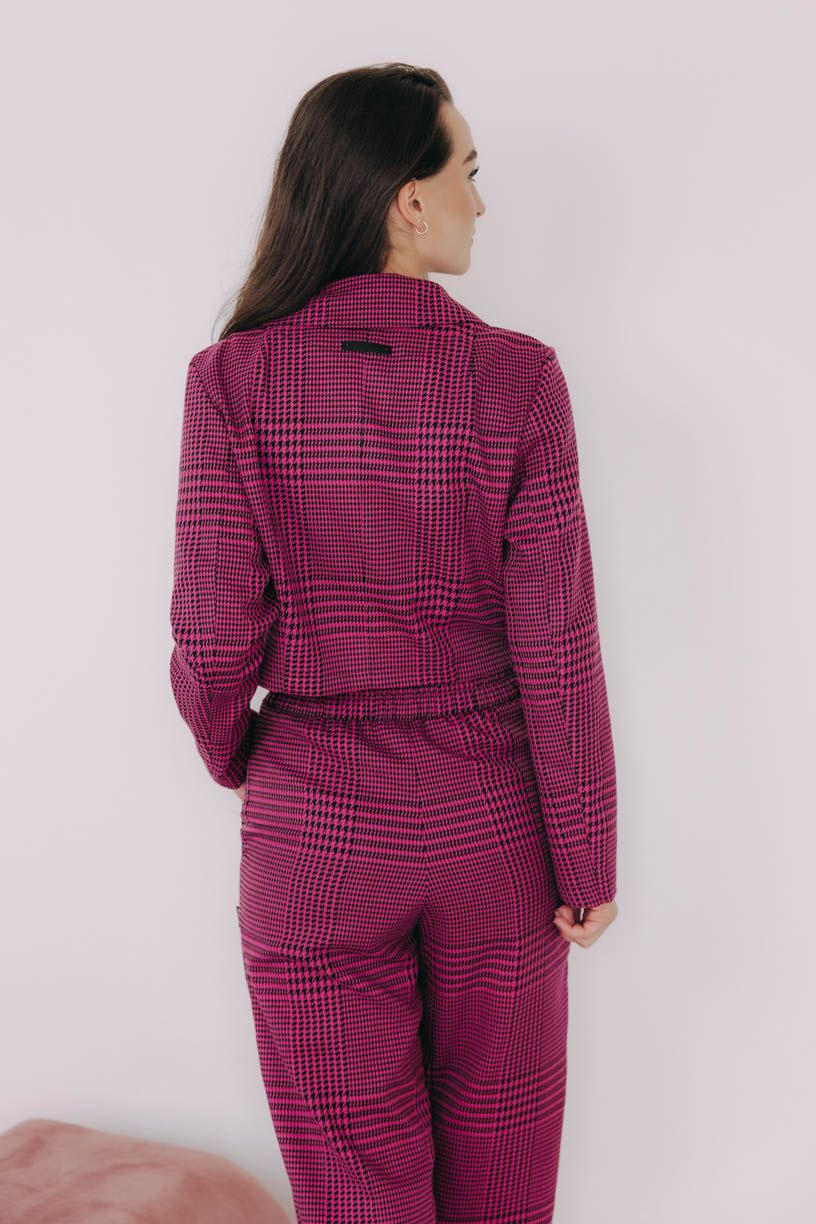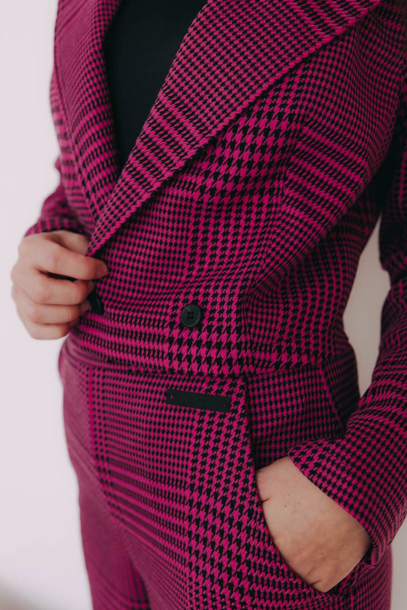 Sáčko Aris ve fuchsiové s jemným káro vzorem je kousek, který s lehkostí definuje moderní ležérní eleganci. Přináší šmrnc do každého vašeho outfitu, ať už míříte kamkoliv: