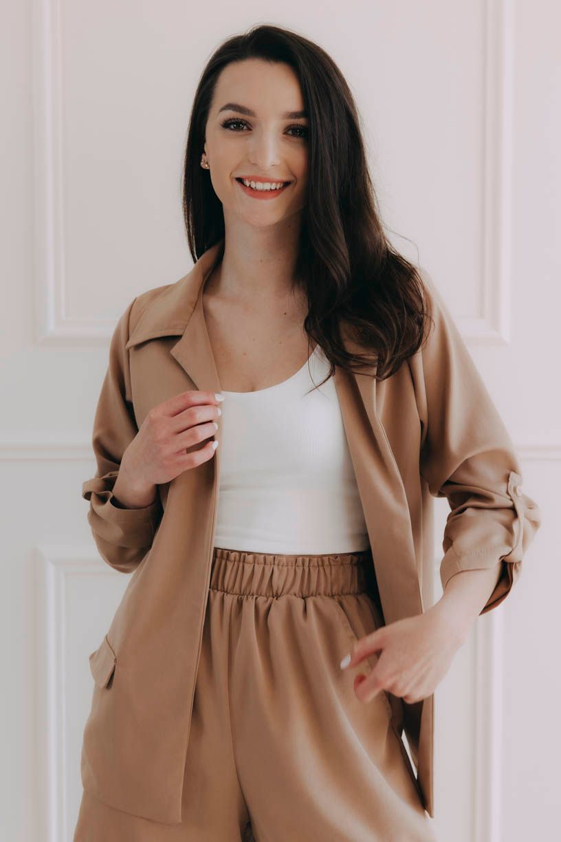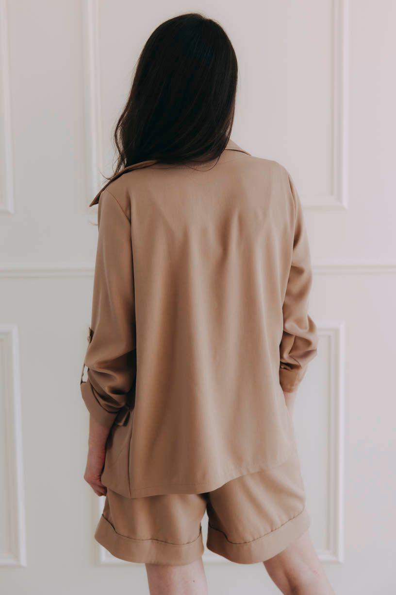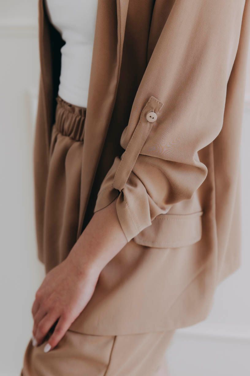 Oblékněte jej přes top či body a spokojeně si vykračujte, kam vás toulavé boty zavedou. Můžete si také pohrát se sofistikovanými rukávy – noste je spuštěné, nebo ve vhodném okamžiku vyhrňte a zapněte na knoflíček.
