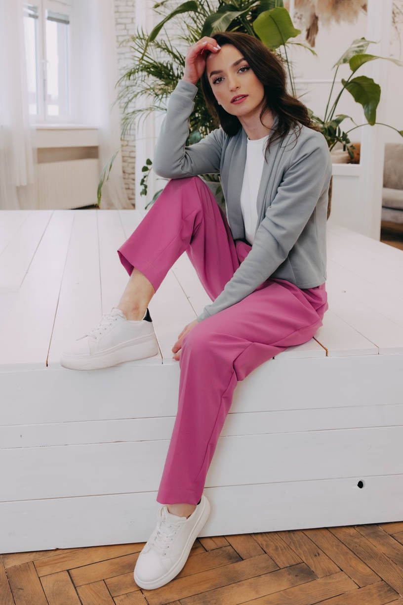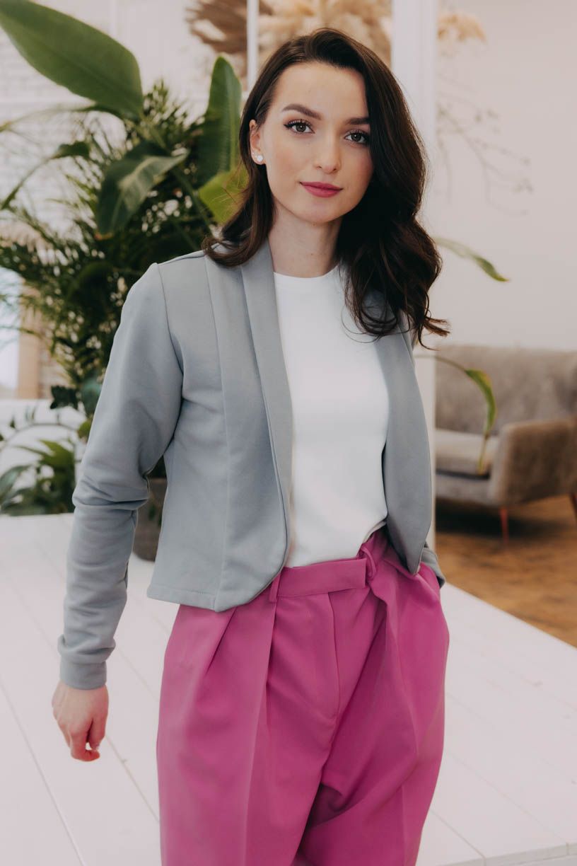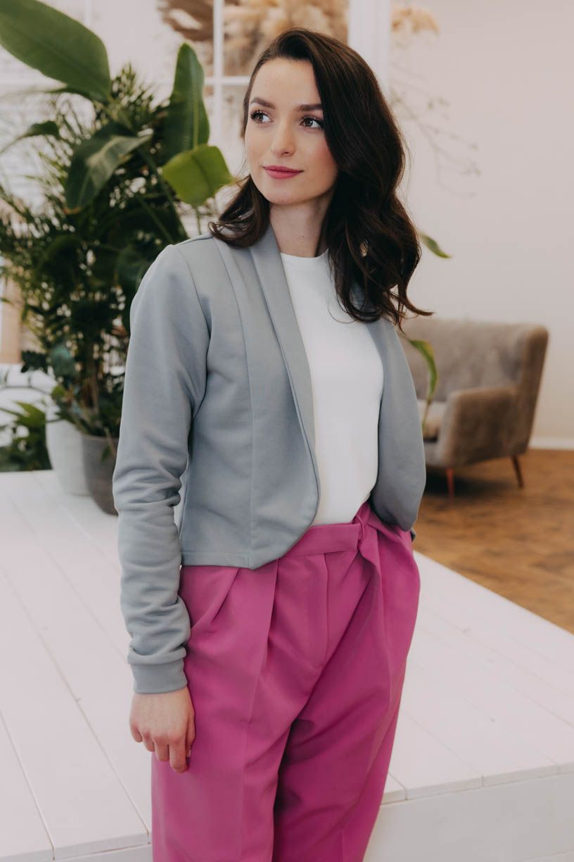 Tumia je kratší verzí oblíbeného saka Ania, takže to není jen pohodlnost, která je mu vlastní, ale i punc ležérnosti. Bezvadně se hodí k sukni (třeba s Mawe se bude vyjímat přímo dokonale), ke kalhotám (krásně zjemní například trochu maskulinní typ Sanyu), ale v létě rozhodně zabodujete i v kombinaci s kraťasy.