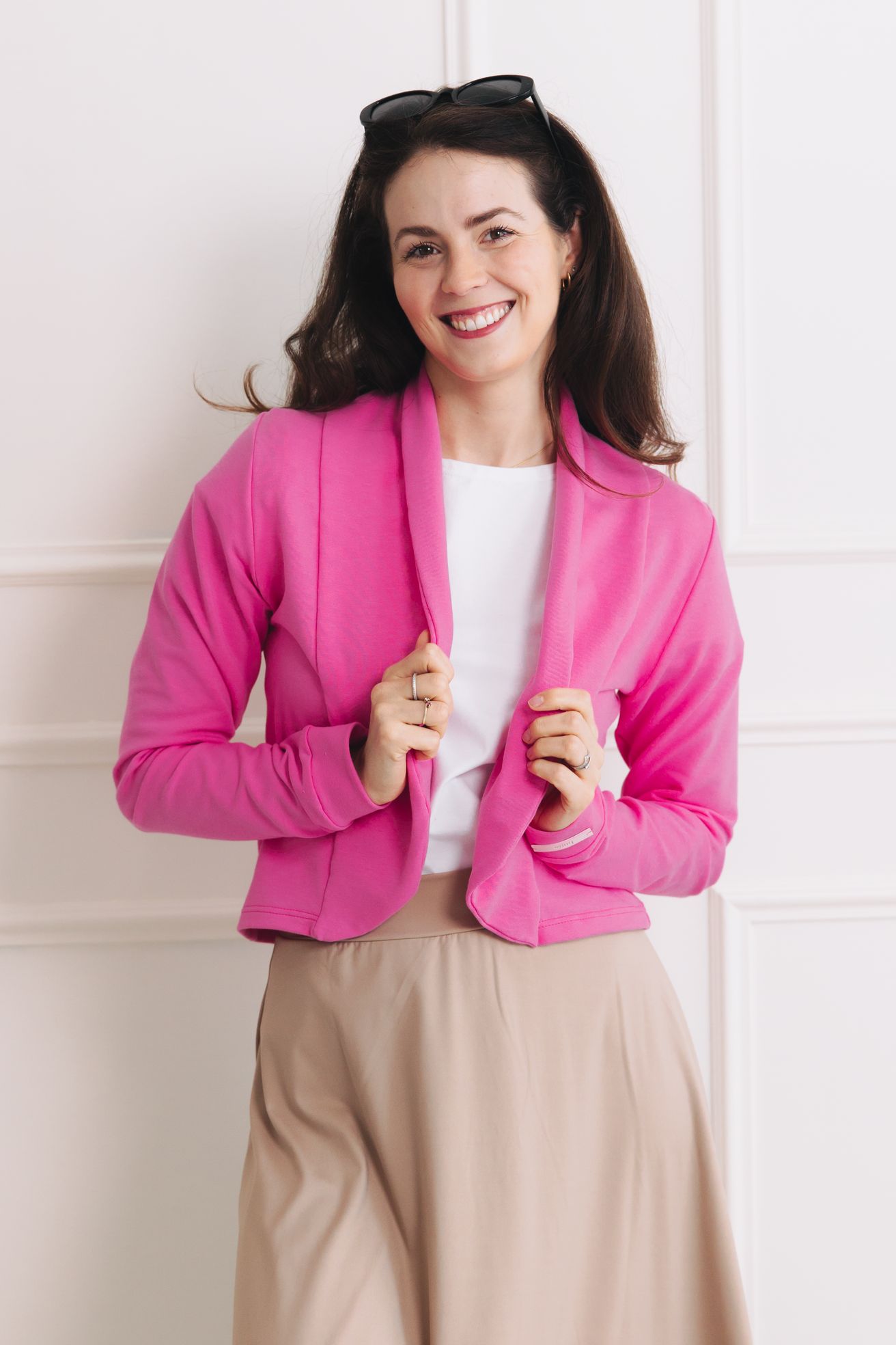 Sáčko je dnes prostě stejně nepostradatelným kouskem jako príma mikča nebo příjemný svetřík. Růžové sáčko Tumia je kratší verzí oblíbeného saka Ania, takže to není jen pohodlnost, která je mu vlastní, ale i punc ležérnosti. Je přesně tou třešničkou na dortu, kterou váš minimalistický šatník hledal. Díky zkrácenému střihu a jemné tečkované struktuře dodá šmrnc každému outfitu, aniž byste musela obětovat svůj komfort. Je to zkrátka láska na první dotek i pohled.
