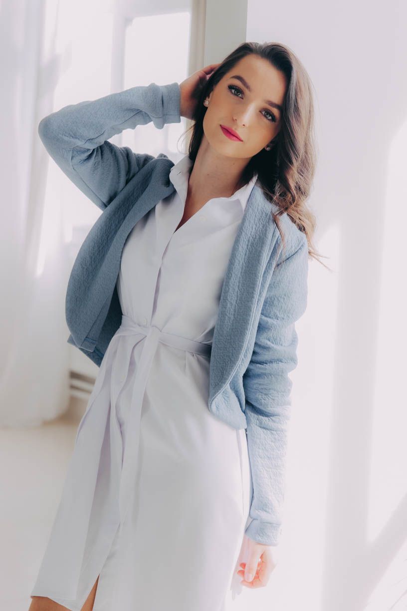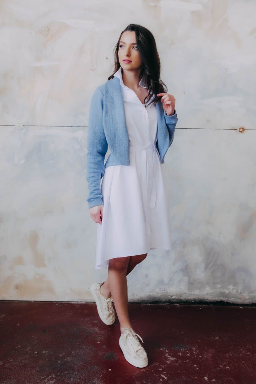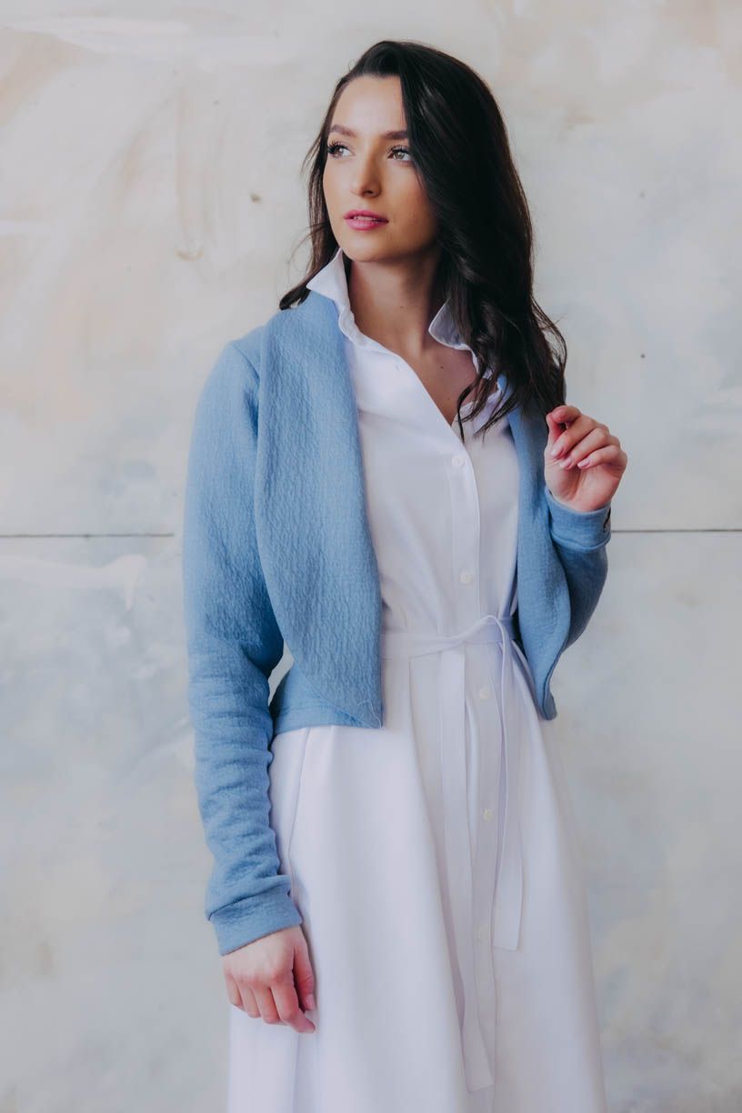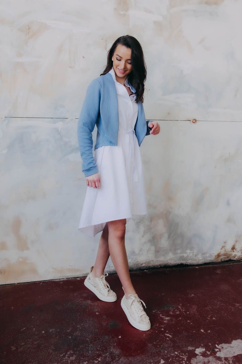 Tumia je kratší verzí oblíbeného saka Ania, takže to není jen pohodlnost, která je mu vlastní, ale i punc ležérnosti. Bezvadně se hodí k sukni (třeba s Mawe se bude vyjímat přímo dokonale), ke kalhotám (krásně zjemní například trochu maskulinní typ Sanyu), ale v létě rozhodně zabodujete i v kombinaci s kraťasy.