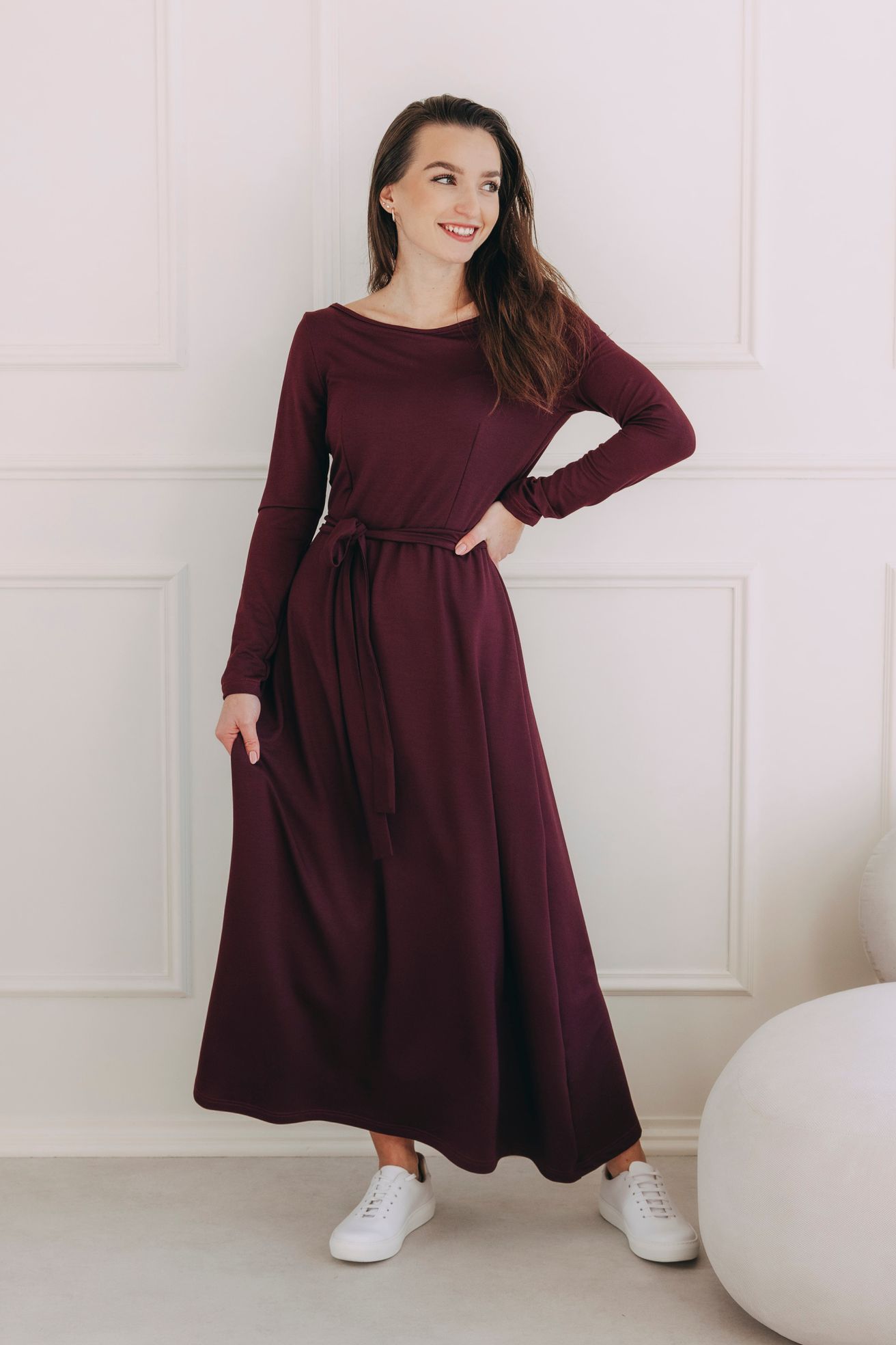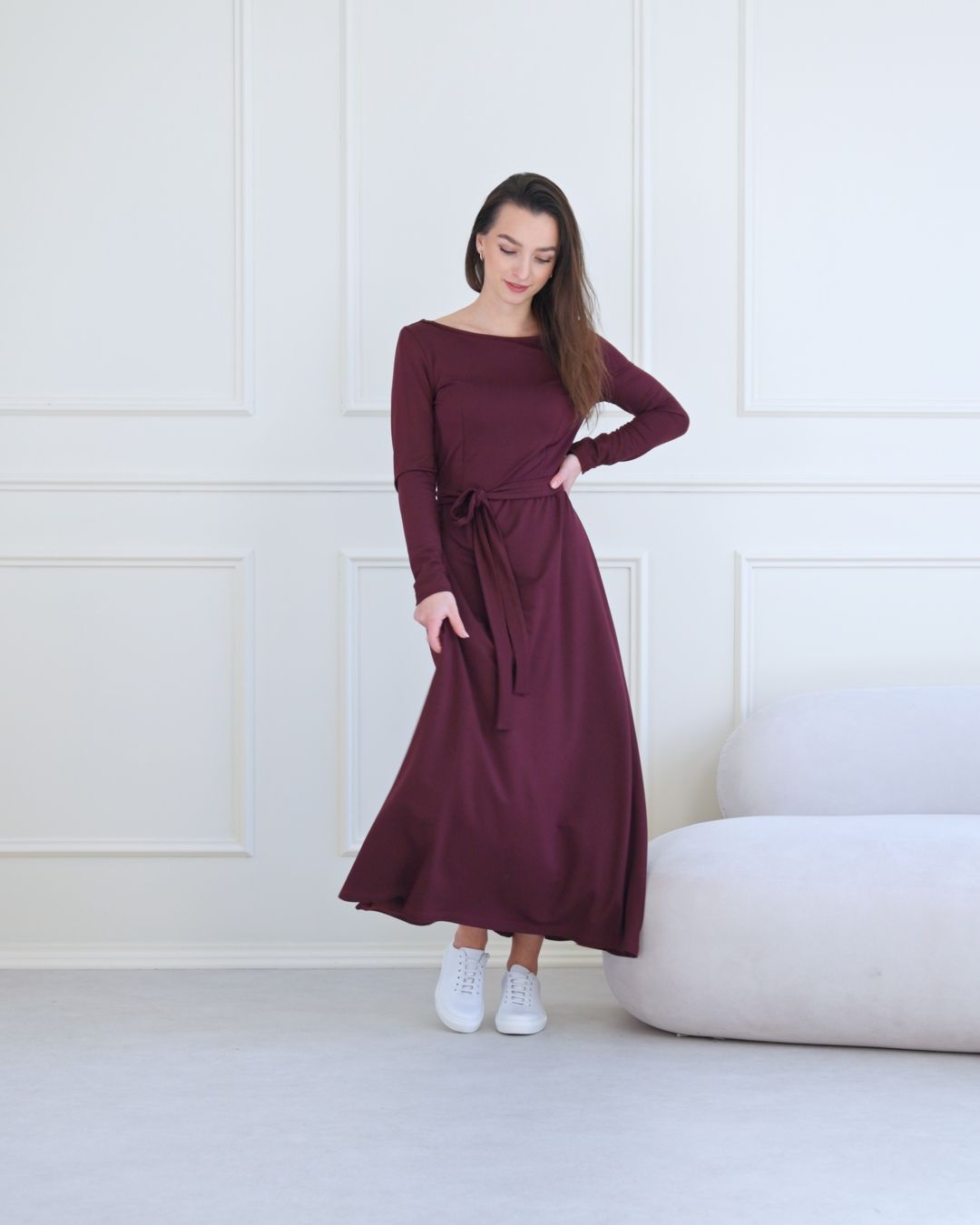 Abidemi: Vínové šaty s áčkovou sukní pro styl bez námahy
