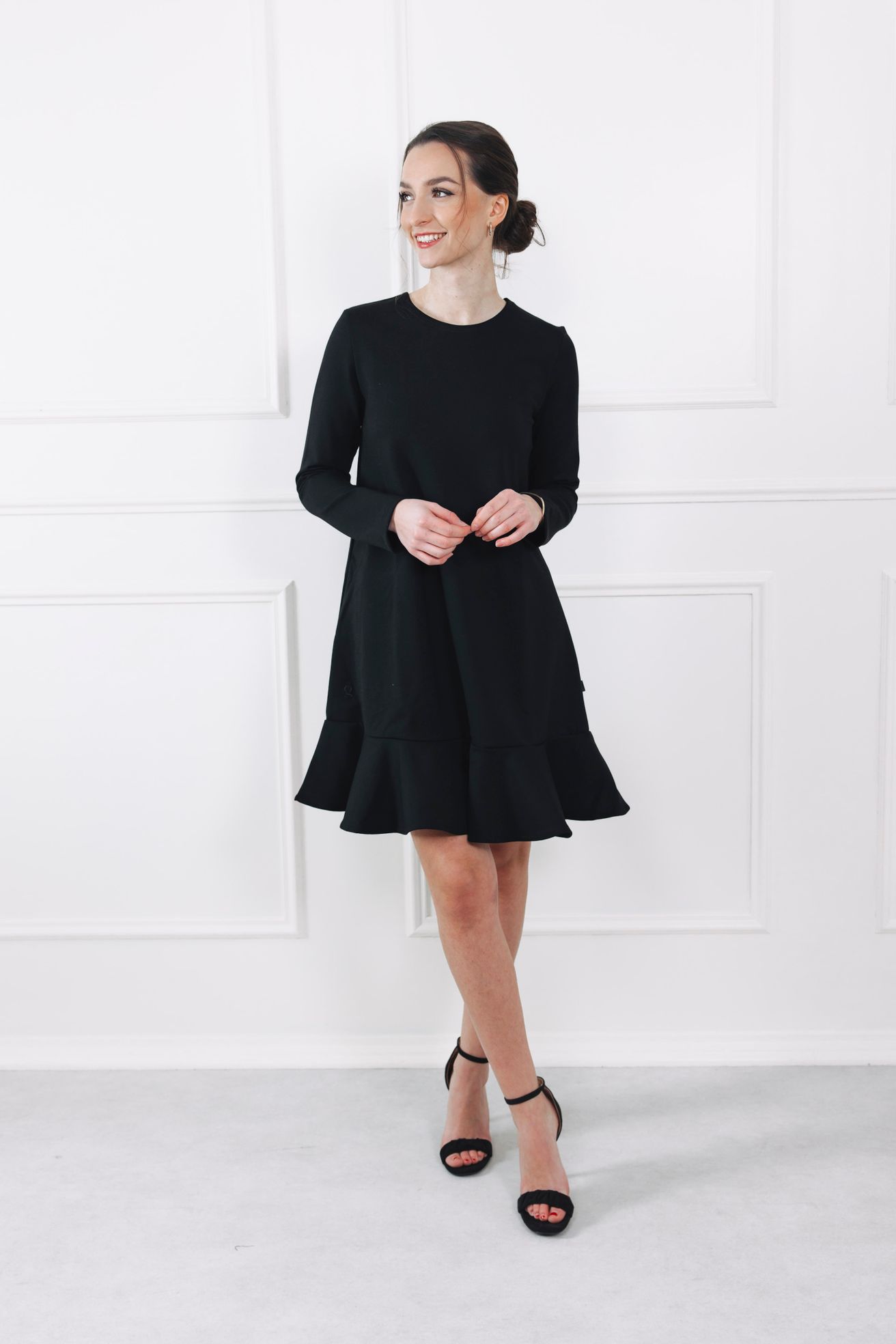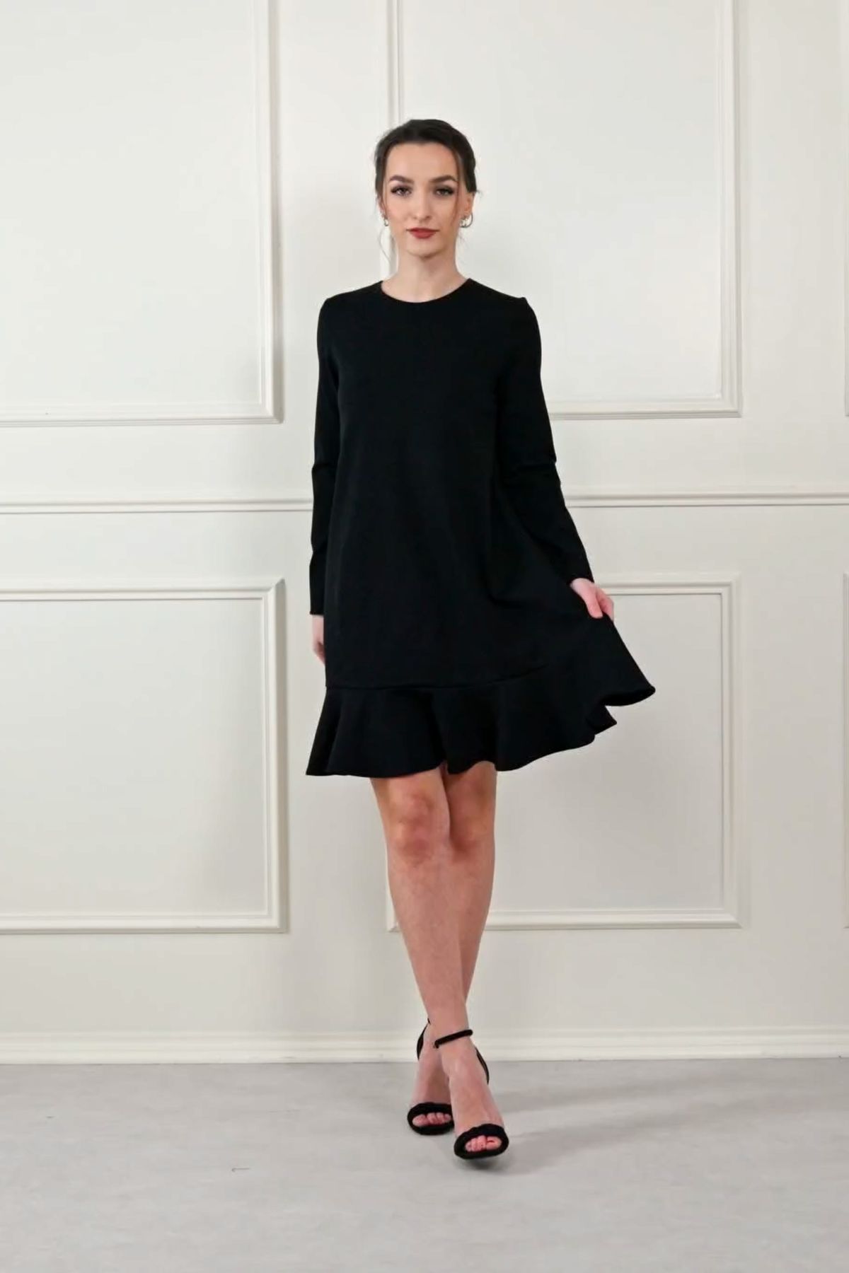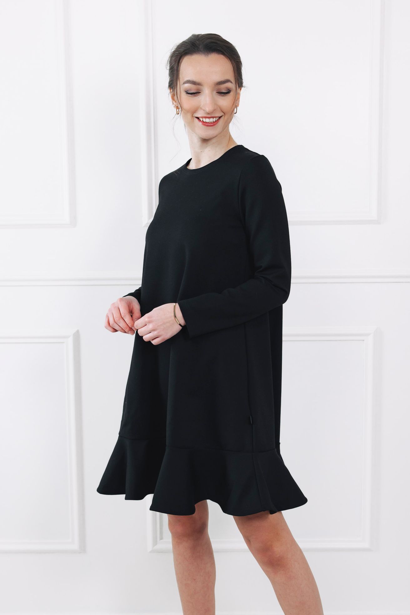 Když podzim zaklepe na dveře, není nic lepšího než obléci si něco, co zahřeje tělo i duši. Představujeme vám naše černé šaty s volánovou sukní, které mají jednu zvláštní schopnost – umí vykouzlit stejný úsměv jako hrnek černé kávy po ránu. Náhoda? Ale kdeže. Tyhle šaty jsou navrženy s nápadem a láskou, ušity v Čechách a prošité důrazem na každý detail. Výsledek? Model, ve kterém se budete cítit sebevědomě, svobodně a tak žensky, že byste se nejraději roztočila uprostřed parku a chytala paprsky slunce.