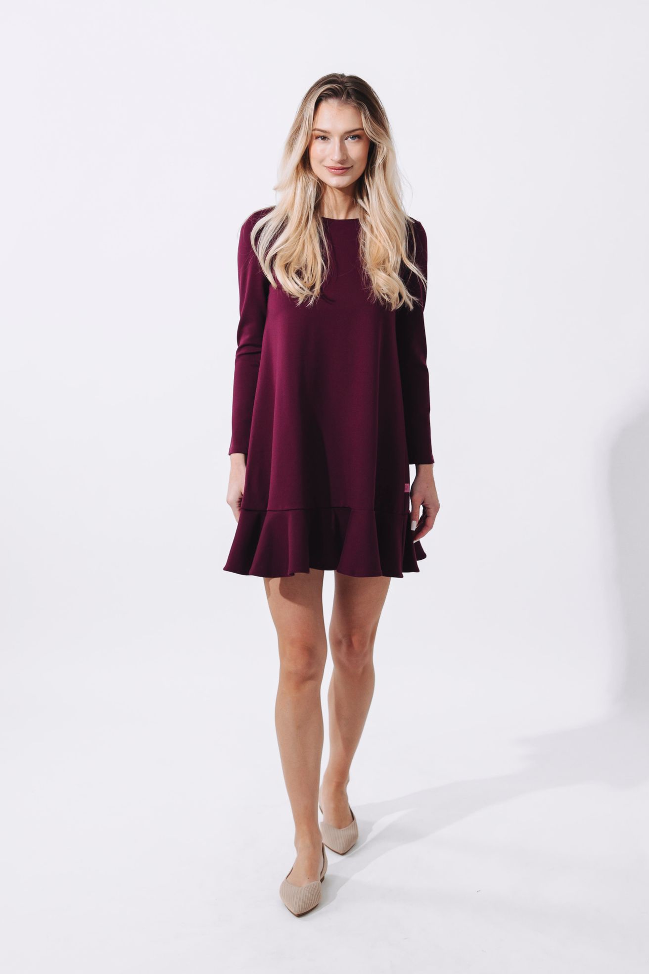 Když podzim zaklepe na dveře, není nic lepšího než obléci si něco, co zahřeje tělo i duši. Představujeme vám naše vínové šaty s volánovou sukní, které mají jednu zvláštní schopnost – umí vykouzlit stejný úsměv jako sklenka červeného vína po náročném dni. Náhoda? Ale kdeže. Tyhle šaty jsou navrženy s nápadem a láskou, ušity v Čechách a prošité důrazem na každý detail. Výsledek? Model, ve kterém se budete cítit sebevědomě, svobodně a tak žensky, že byste se nejraději roztočila uprostřed parku a chytala paprsky slunce.