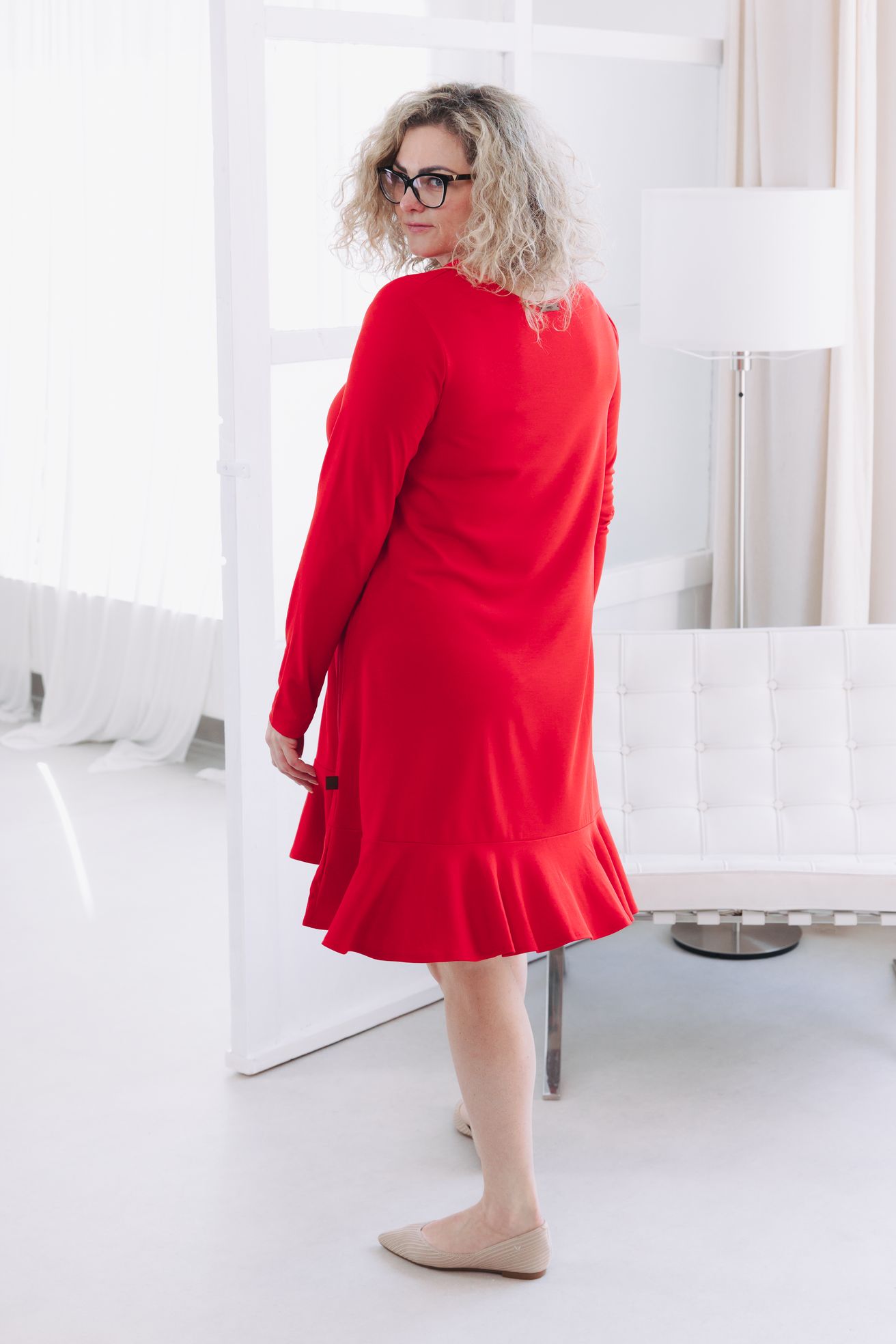 Když je zima v plném proudu, není nic lepšího než obléci si něco, co zahřeje tělo i duši. Představujeme vám naše červené šaty s volánkovou sukní, které mají jednu zvláštní schopnost – umí vykouzlit stejný úsměv jako sklenka červeného vína po náročném dni. Náhoda? Ale kdeže. Tyhle šaty jsou navrženy s nápadem a láskou, ušity v Čechách a prošité důrazem na každý detail. Výsledek? Model, ve kterém se budete cítit sebevědomě, svobodně a tak žensky, že byste se nejraději roztočila uprostřed parku a chytala paprsky slunce.