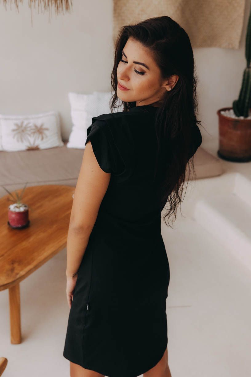 - Detaily rukávů: Místo klasických rukávů šaty zaujmou nápadným detailem v podobě navrstvených rukávů, které připomínají malé volánky. Dodávají šatům hravost a originalitu, aniž by ubíraly na eleganci.