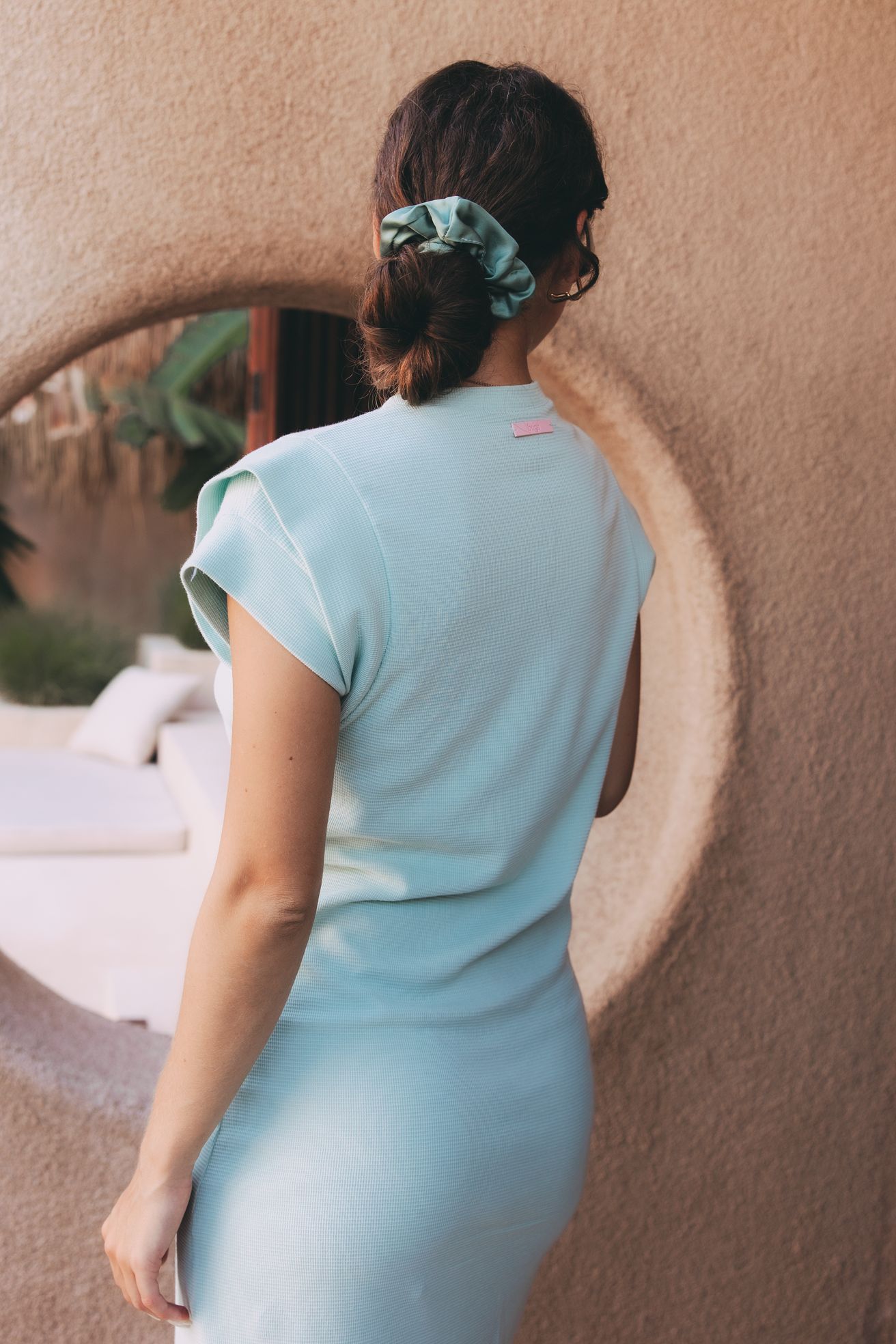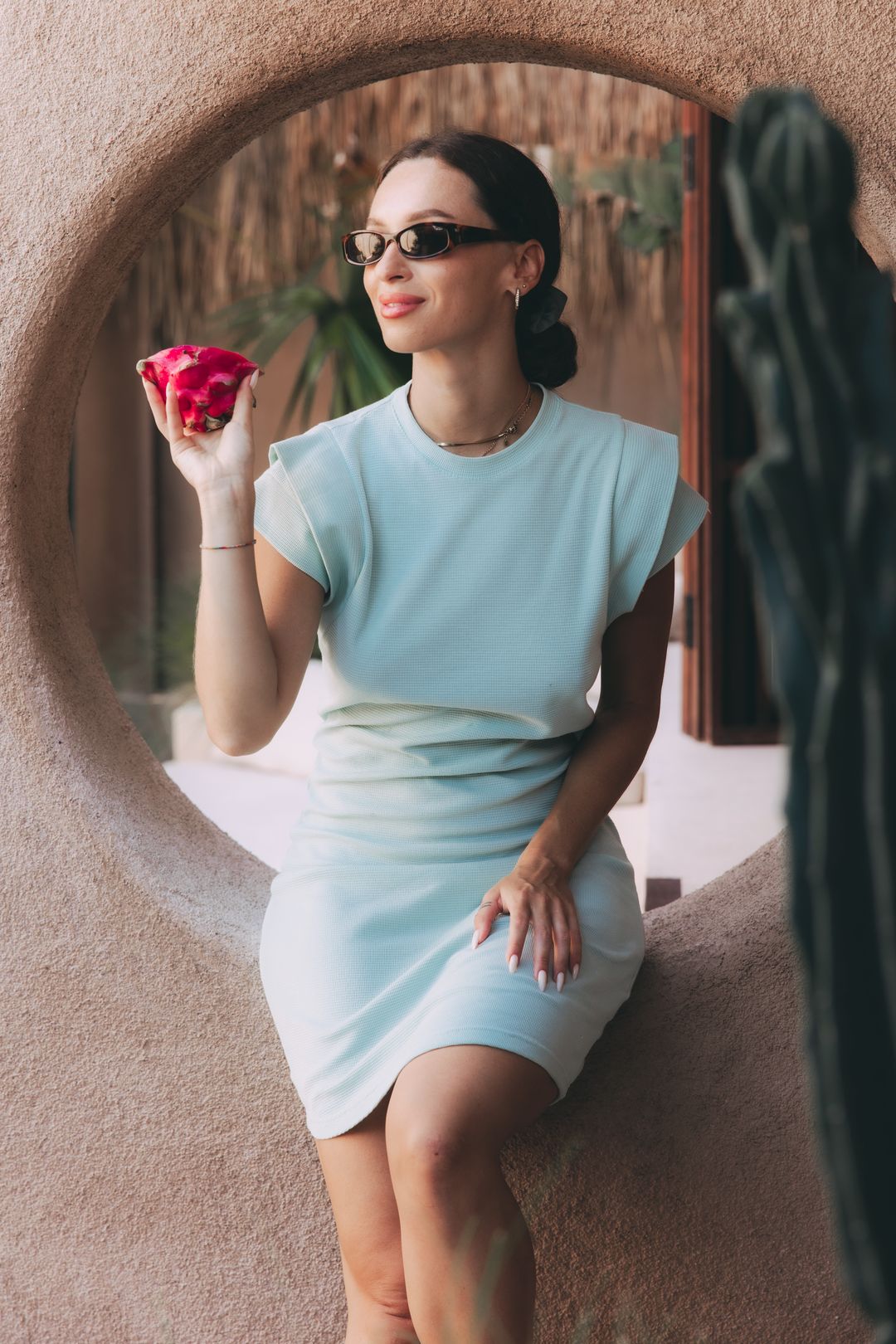 - Detaily rukávů: Místo klasických rukávů šaty zaujmou nápadným detailem v podobě navrstvených rukávů, které připomínají malé volánky. Dodávají šatům hravost a originalitu, aniž by ubíraly na eleganci.