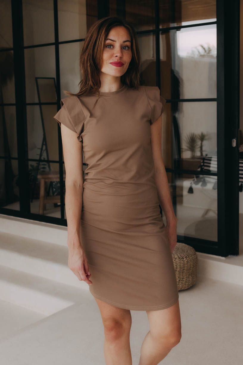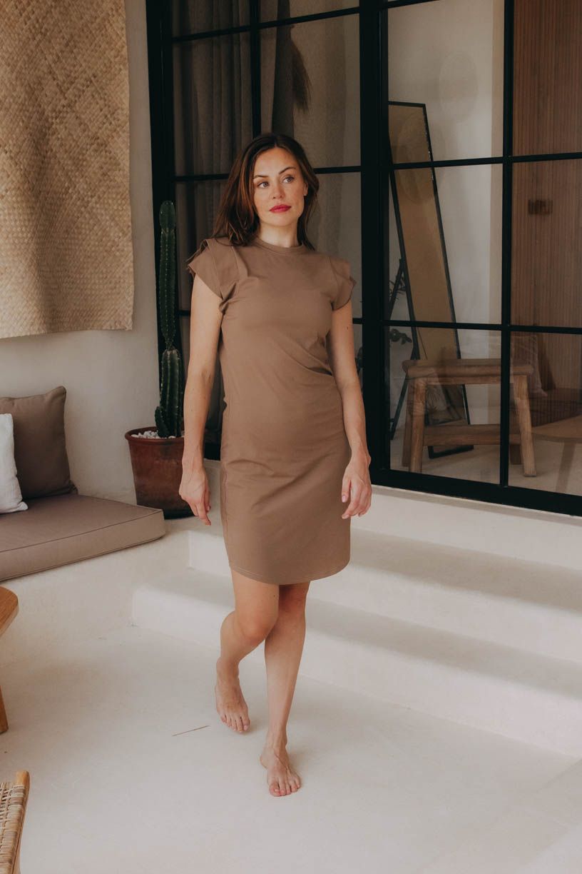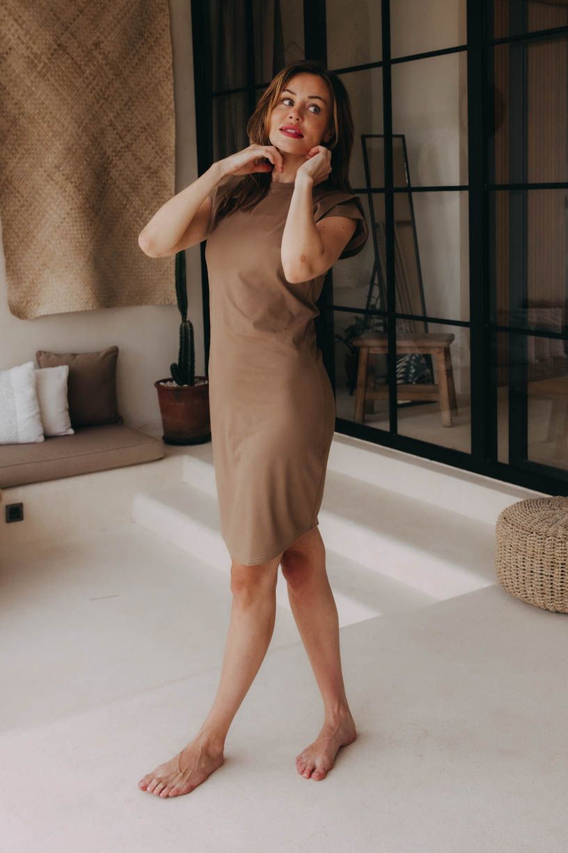 Šaty Anaku sice vypadají basic, ale okouzlí nápadným detailem v podobě navrstvených rukávů. Zakončili jsme je dokulata těsně pod koleny – to pro delší krok, když vás na dovolené zastihne třeba nečekaná přeháňka.
