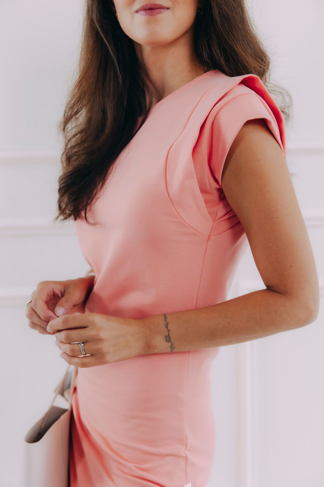 - Detaily rukávů: Místo klasických rukávů šaty zaujmou nápadným detailem v podobě navrstvených rukávů, které připomínají malé volánky. Dodávají šatům hravost a originalitu, aniž by ubíraly na eleganci.
