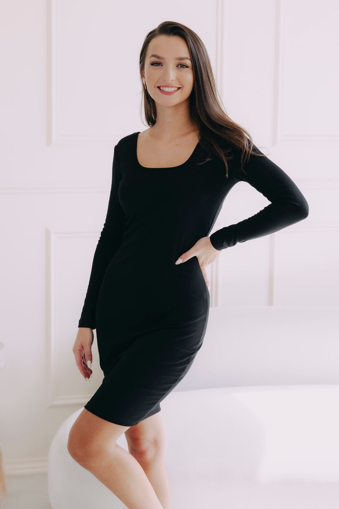 - Střih, který lichotí: Přiléhavý, na tělo, s dlouhými rukávy a hlubokým výstřihem na zádech. Zkrátka mají vše, co vašim křivkám bude slušet. Jsou ideální šaty pro typ hruška, ale sluší i dalším typům postavy.