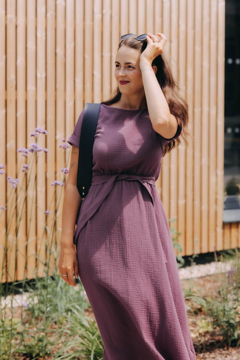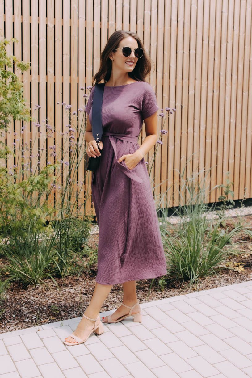 Šaty Boho mají příjemný volný střih, v pase decentní gumičku, kterou můžete ovázat látkovým opaskem, nápaditě řešené krátké rukávy a samozřejmě praktické kapsy. Kvalitní mušelín oceníte jak při celodenním nošení, tak i v parných dnech.
