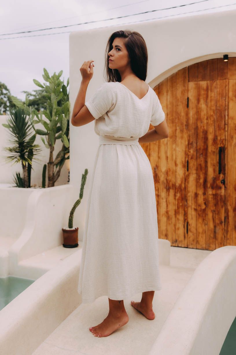 Volný střih šatů Boho je jako stvořený pro bláznivé letní zážitky. Oceníte na nich hravý pásek i praktické kapsy.