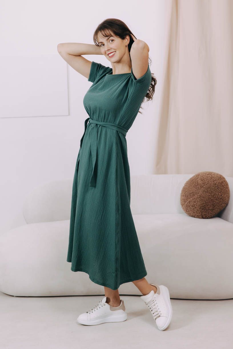 Šaty Boho mají příjemný volný střih, v pase decentní gumičku, kterou můžete ovázat látkovým opaskem, nápaditě řešené krátké rukávy a samozřejmě praktické kapsy. Kvalitní mušelín oceníte jak při celodenním nošení, tak i v parných dnech.