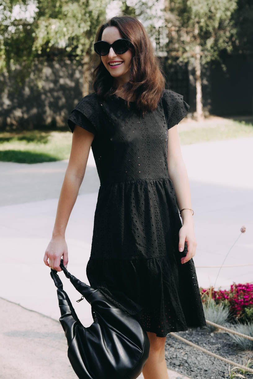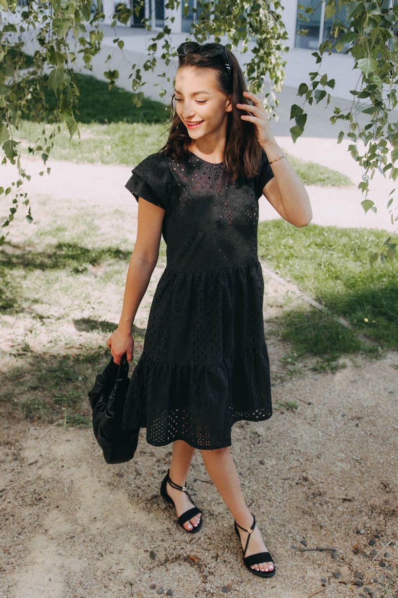 Ačkoli je to „jenom“ černá, v případě Esme si nemusíte ani lámat hlavu s doplňky – tenhle kousek je totiž nepřehlédnutelný už sám o sobě.