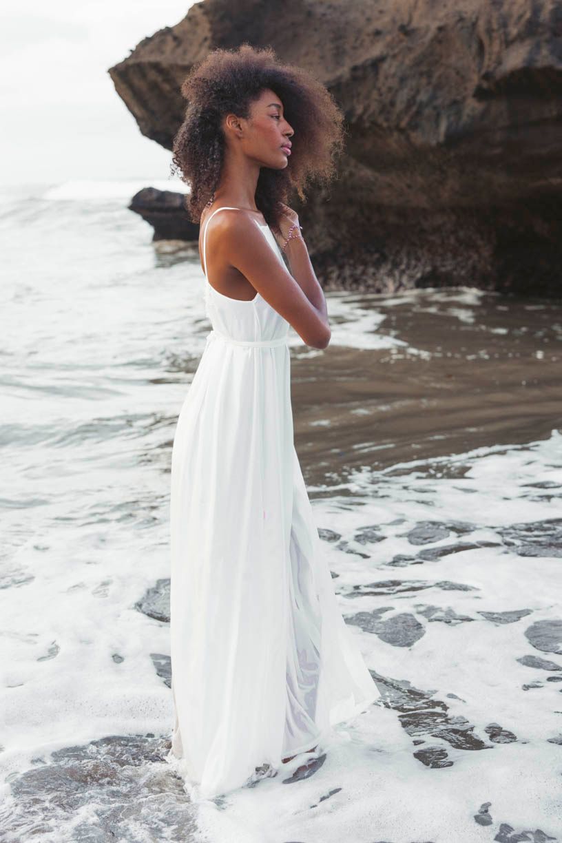 - Střih: Šaty jsou dlouhé až na zem, ale lehké a vzdušné. Jednoduchého střihu, a přitom prudce sofistikované. Decentní, a přesto velmi sexy. Rozparek ke koleni je tak akorát. Pohrajte si se šňůrkou a vytvářejte celou řadu nápaditých outfitů. Ponechte odhalená záda àla víla, anebo ji ovažte kolem pasu a zdůrazněte svou ženskou siluetu.