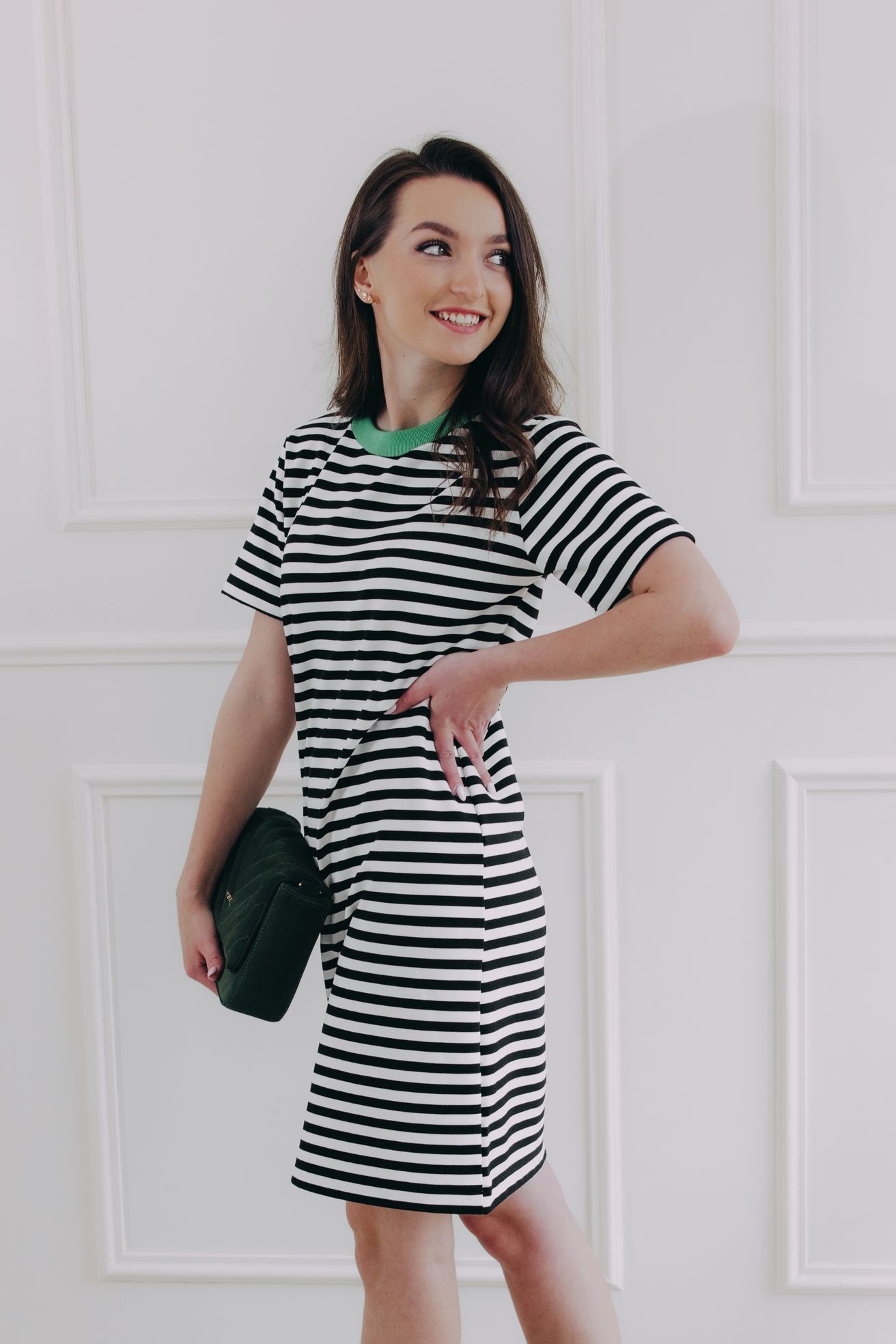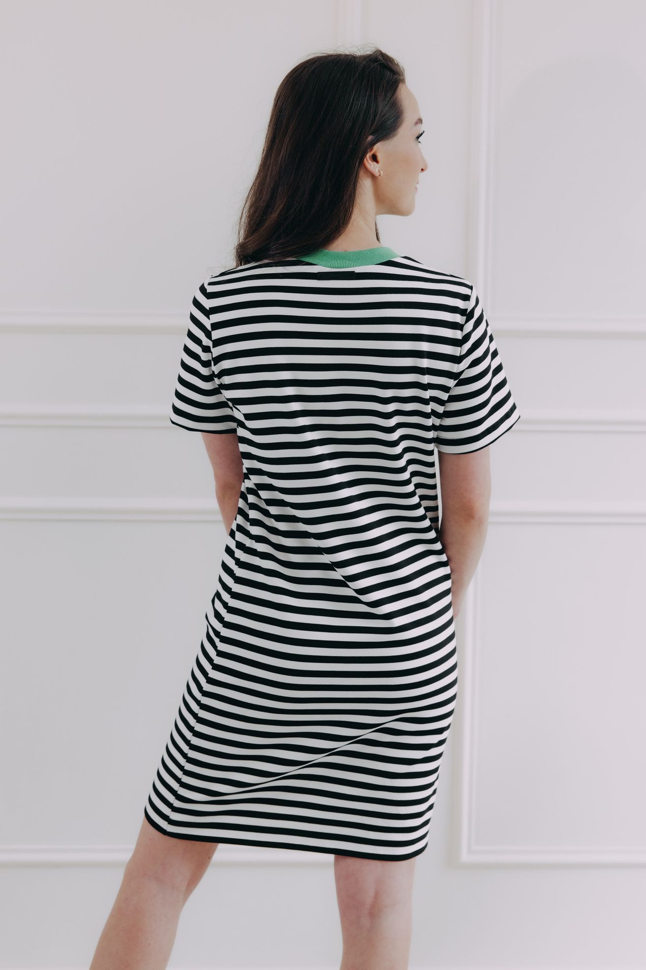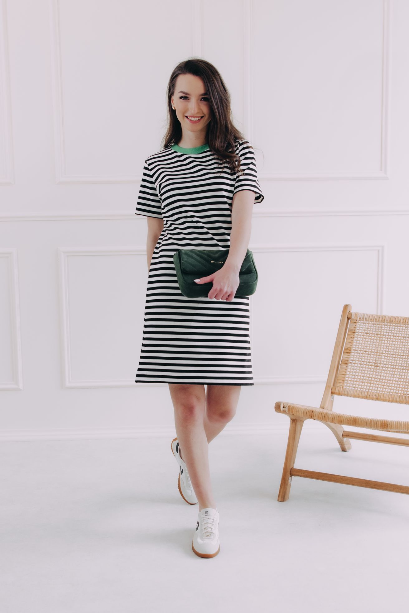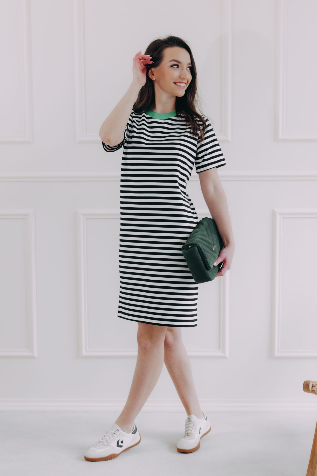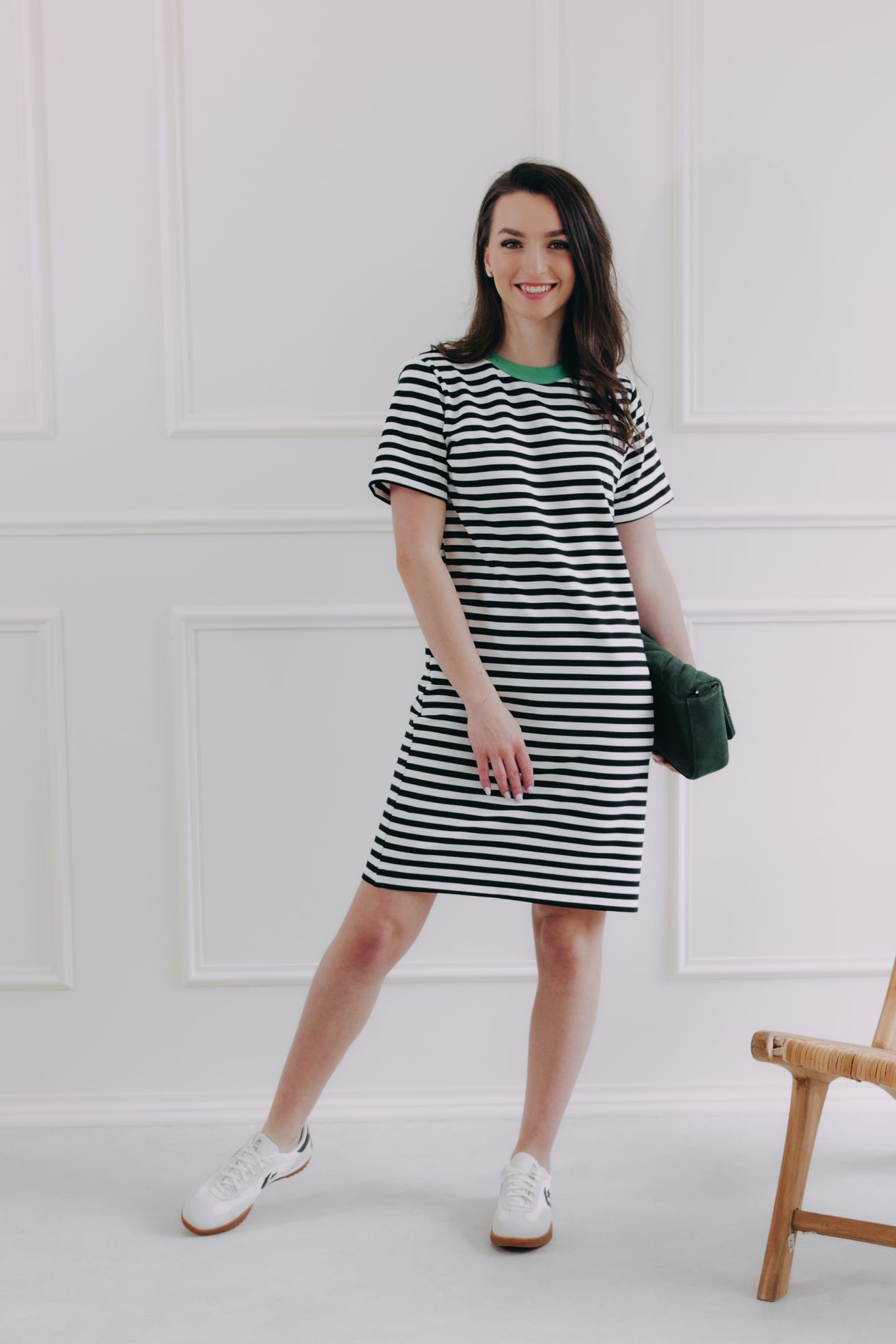 Černobílé proužky nikdy nevyjdou z módy. Šaty Lamin jsou důkazem, že jednoduchost může být maximálně stylová. Rovný střih, jemný zelený detail u krku a měkký, příjemný materiál z nich dělají ideální volbu na dny, kdy chceš být chic, ale zároveň v pohodlí. Skvěle sedí ke teniskám i sandálkům – na procházku, brunch nebo i do kanceláře.
