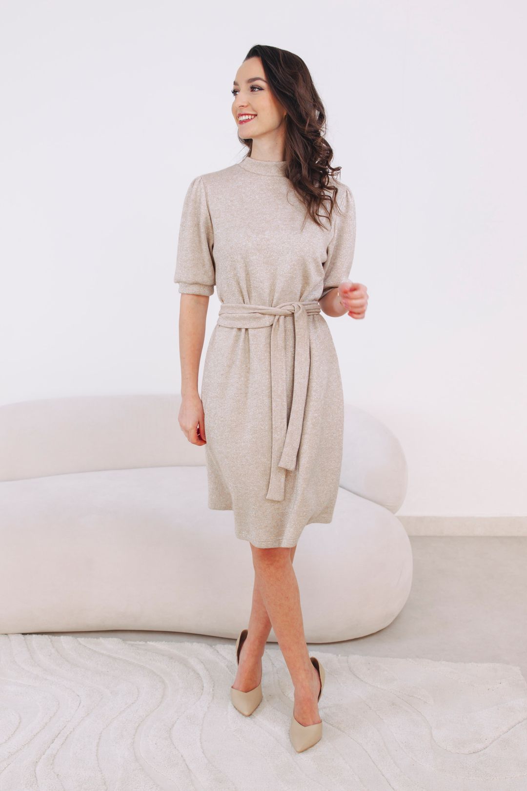 Sezóna třpytu začíná. Výjimečné příležitosti si žádají výjimečné šaty – a Makena jsou přesně ty pravé. Světlé šaty z pružného materiálu protkaného lesklými nitkami dodají vašemu outfitu elegantní třpyt, který nepůsobí lacině. Jsou ideální volbou jako šaty na vánoční večírek i sváteční večer, kdy chcete spojit eleganci, pohodlí a špetku sebevědomého lesku. V těchto šatech budete vždy tou, která má nejlepší outfit - i když se kolem vás zrovna odehrává deset šílených vánočních příběhů najednou.