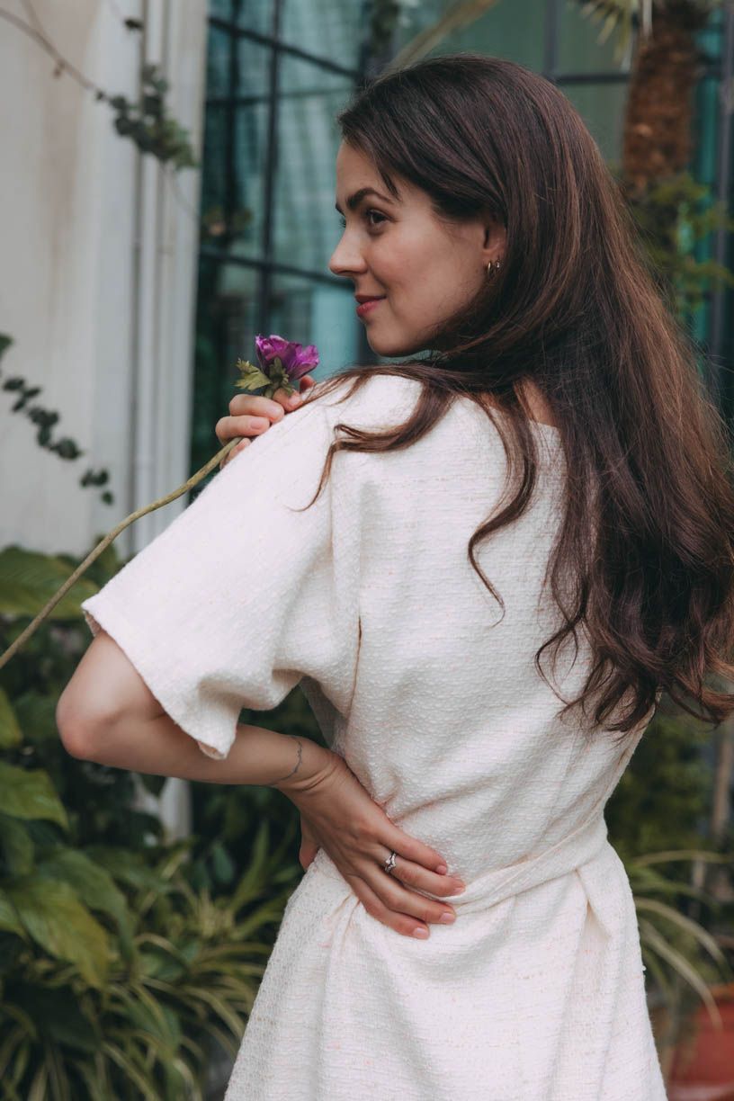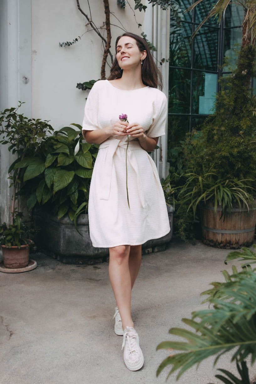 Jsou jednoduché, ale rozhodně ne obyčejné. Mbingu Ecru jsou přesně ty šaty, které si obléknete a okamžitě se v nich cítíte bezchybně. Střih je čistý, ale promyšlený – směrem dolů se mírně rozšiřuje a díky pásku ze stejného materiálu si je můžete přizpůsobit tak, aby vytvořily krásnou áčkovou siluetu.