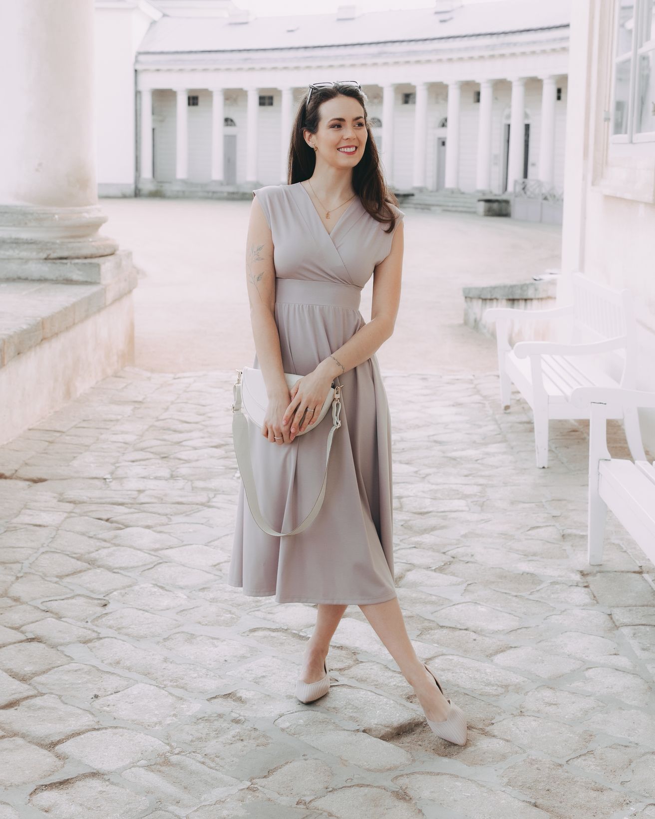- Do města i do parku: Obujte bílé tenisky, velké sluneční brýle a vyrazte. Šaty jsou natolik výrazné, že samy o sobě zajistí perfektní outfit bez složitého vymýšlení.