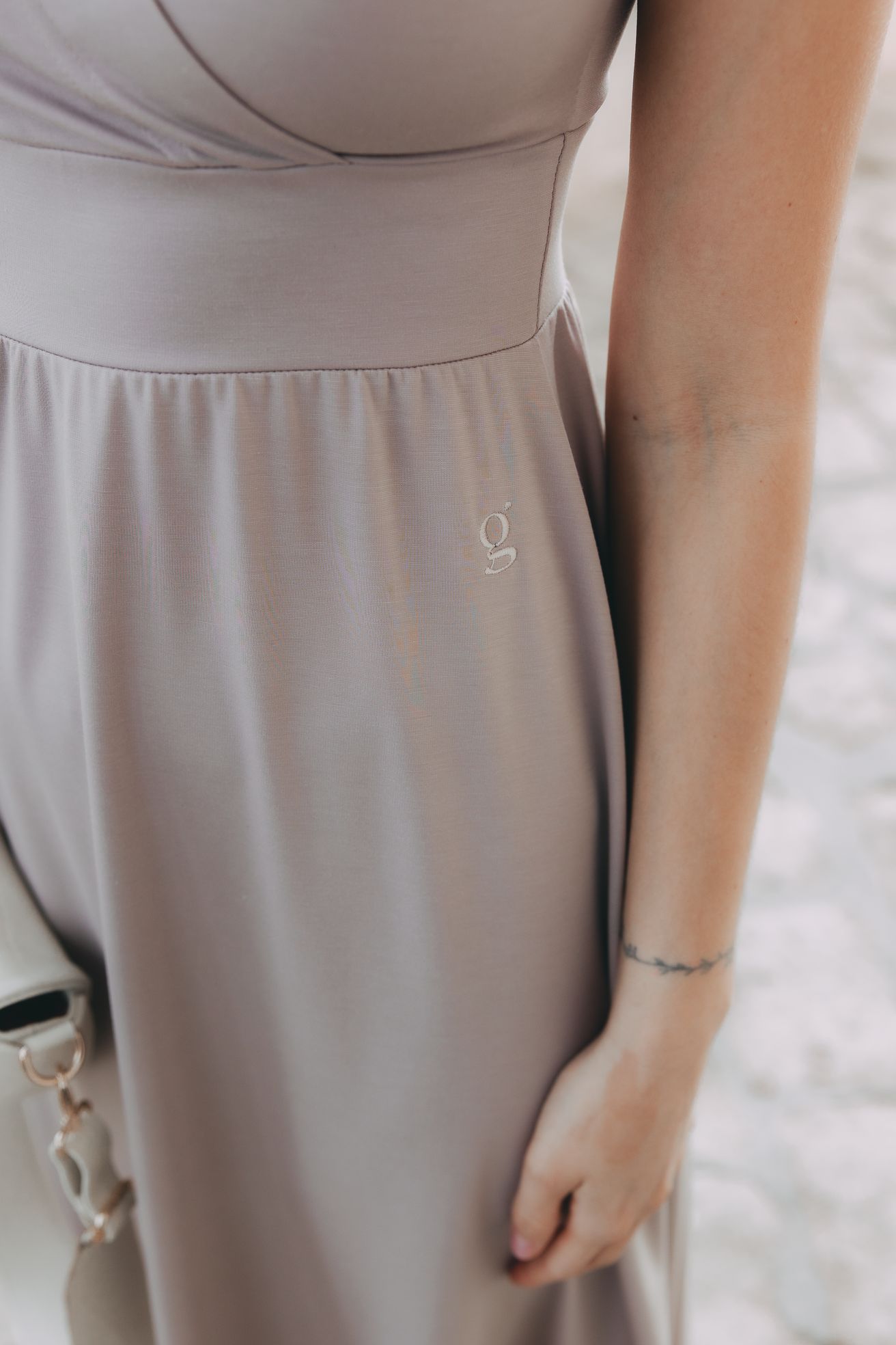 - Gramáž: Látka má gramáž 240 g/m², což je přesně ta váha, díky které šaty krásně splývají, ale neprosvítají a drží svůj tvar i po mnoha vypráních.