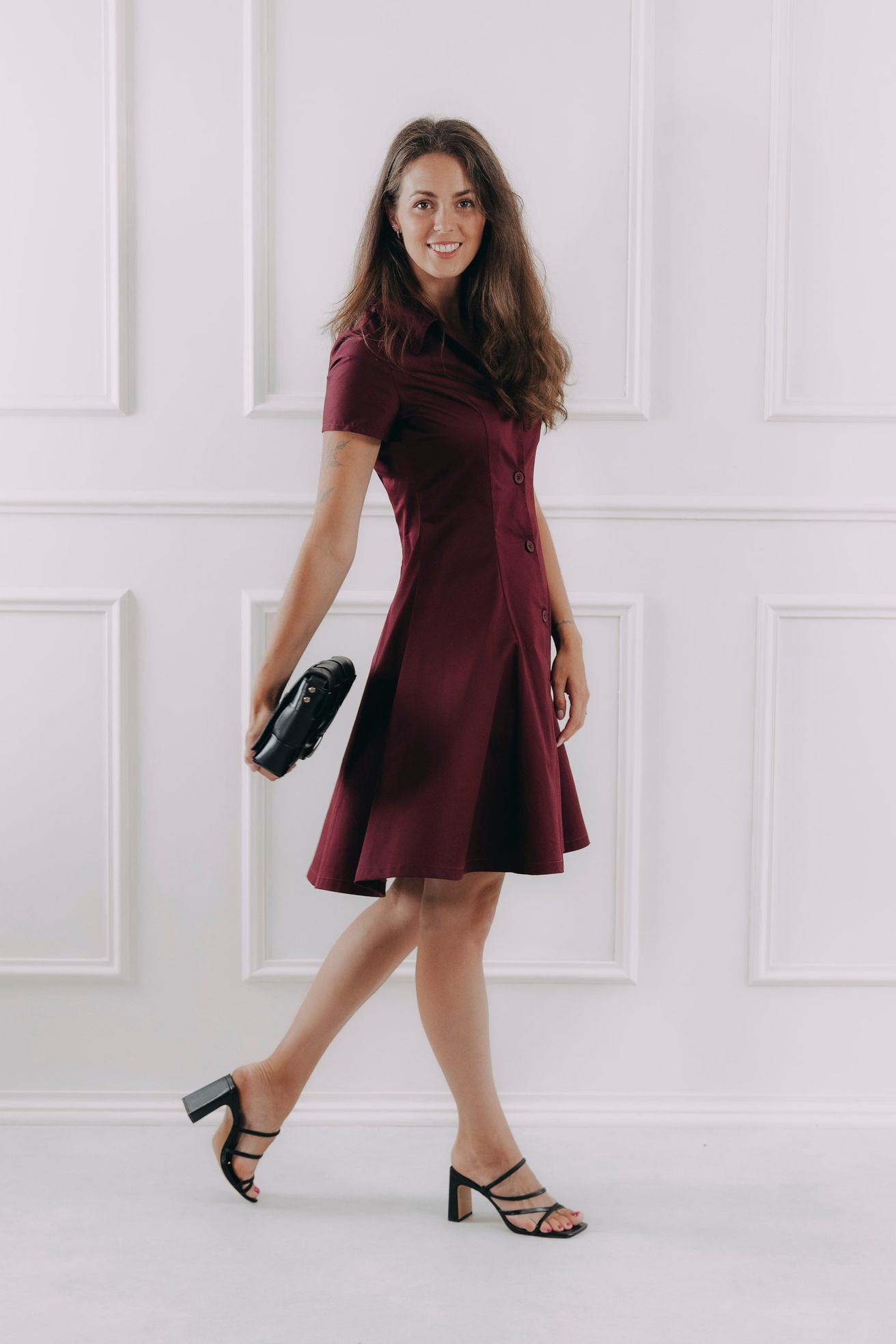 Tyhle košilové šaty v sytě bordó odstínu umí rozsvítit šatník i náladu. Mají klasický límeček, knoflíčky a nadčasový áčkový střih, který lichotí postavě a nikdy nevyjde z módy.
