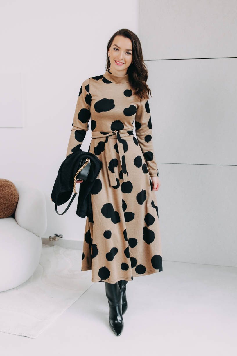 Zamilujte si sofistikované vzory. V šatech New Kissa Brown Dott nenecháte nikoho na pochybách, že právě vy diktujete módní tempo.