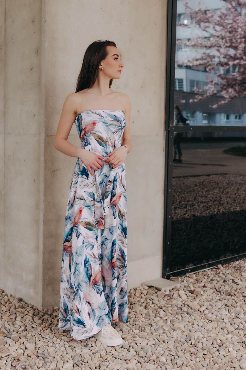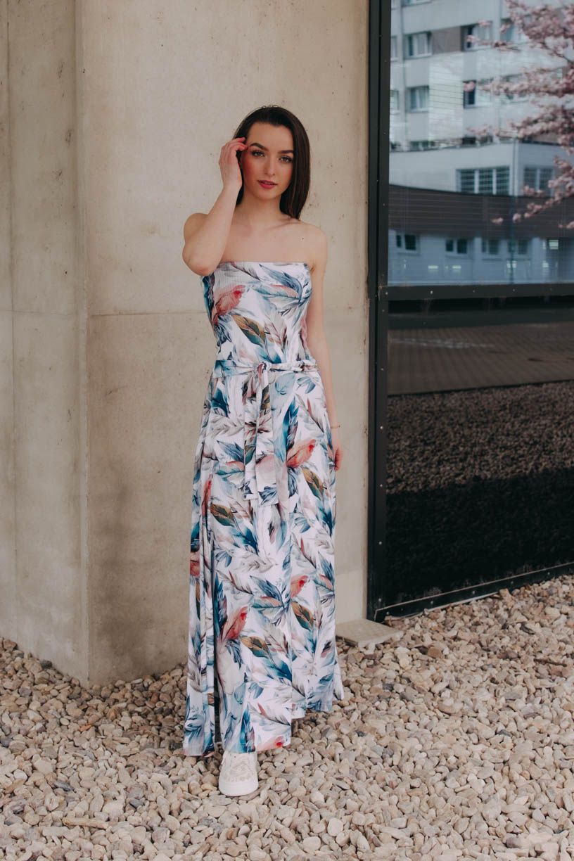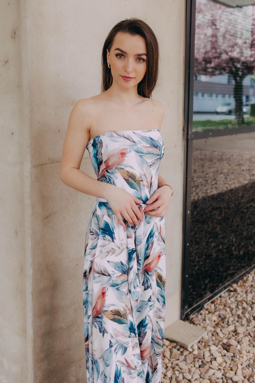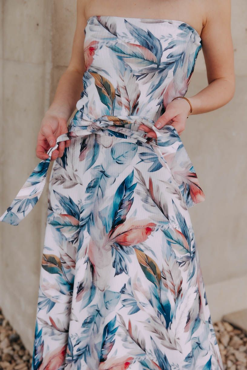 Jak už je naším zvykem, posvítili jsme si na detaily. Dali jsme se záležet na výběru materiálu, který kombinuje viskózu s trochou elastanu – je tedy dostatečně pružný, ale zároveň hezky pevný, aby držel tvar. A ten potisk, to je láska na první pohled! Horní lem šatů má všitou silikonovou gumičku (přece jen, chceme mít posichrované, že vše drží tam, kde má) a v pase je textilní pásek pro dokonalé dotvarování ženské siluety.
