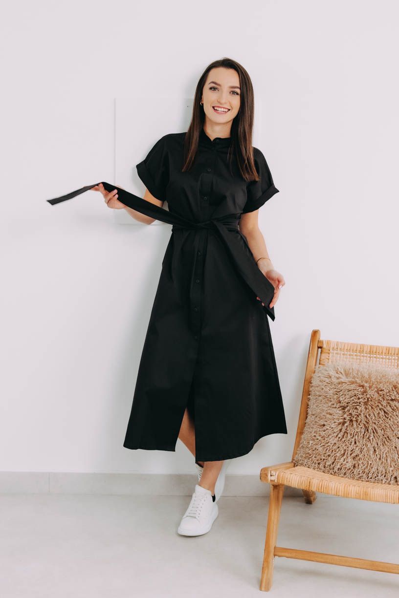 Lehké košilové šaty z kvalitního materiálu, s decentním límečkem, kapsami, páskem a řadou drobných knoflíků jsou ideální pro teplé dny. A jsou nebývale šik.