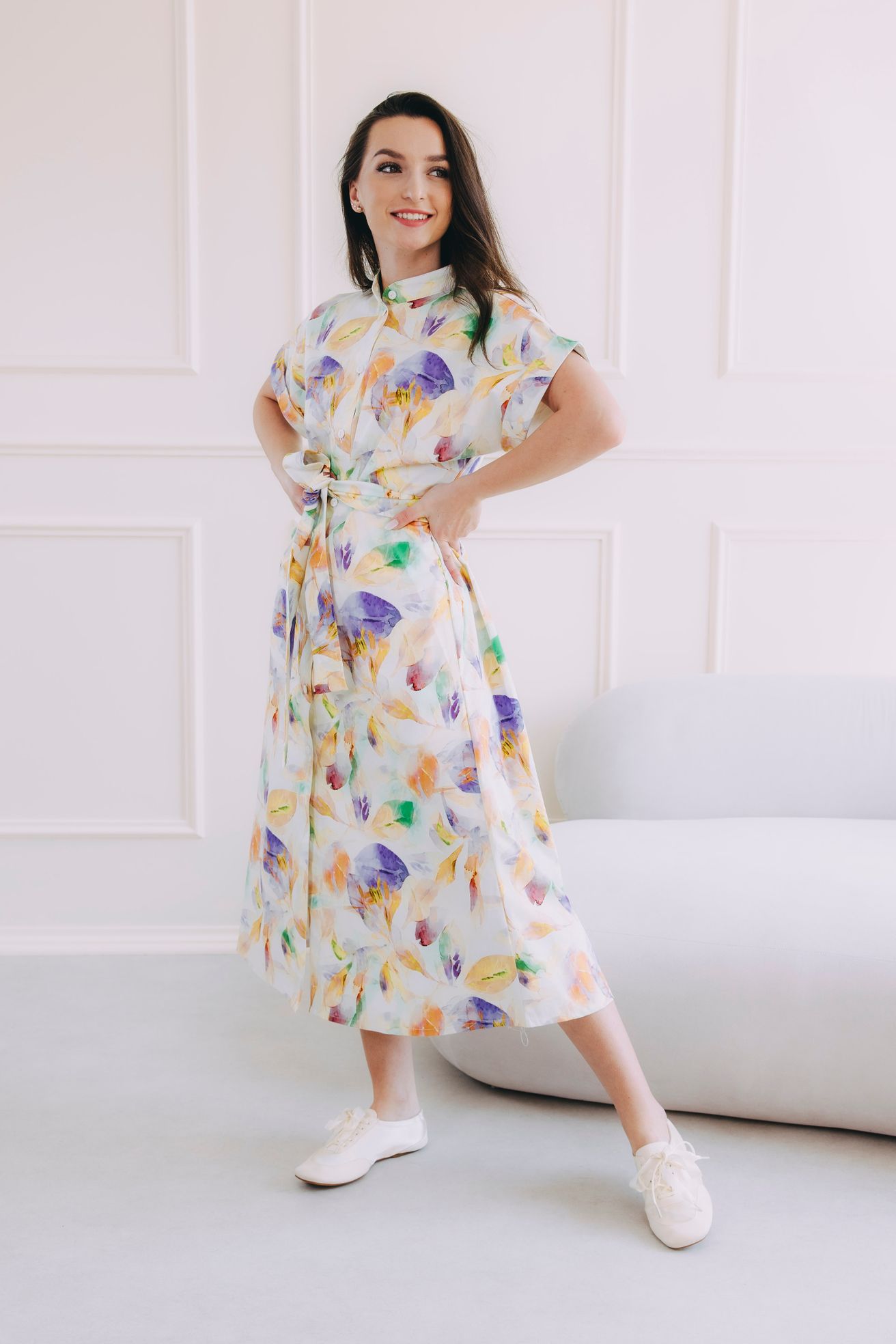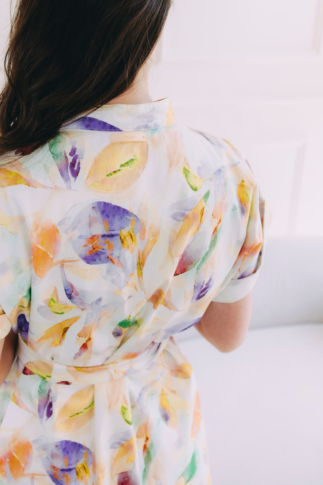 Shania mají decentní límeček, se kterým si můžete pohrát dle libosti a nálady, stejně jako s knoflíčky v barvě látky. Do balíčku přikládáme i pásek, kterým můžete krásně podtrhnout svou siluetu, a který se navíc bezvadně doplňuje s ohrnutými rukávy.
