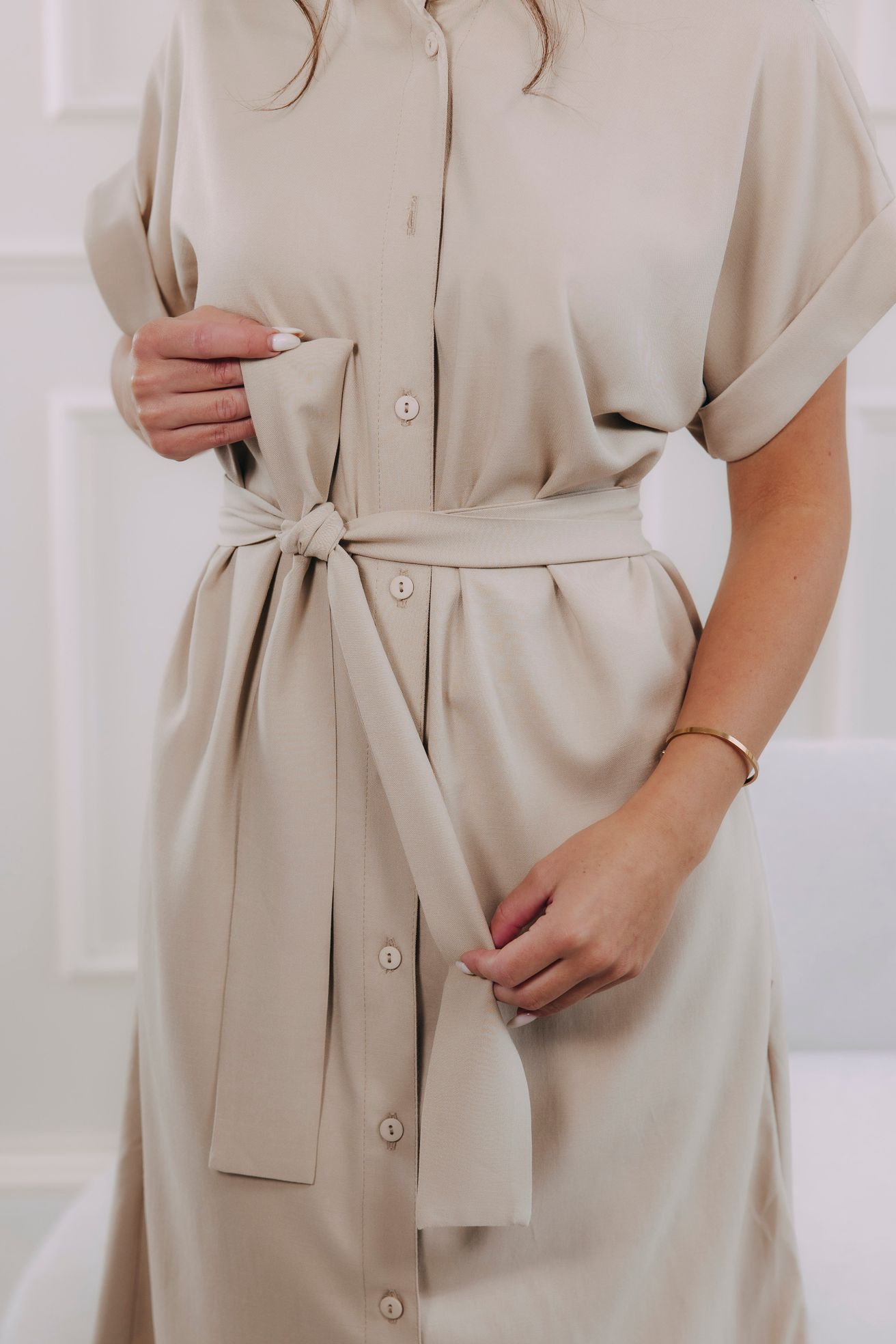 - Střih: Komfortní košilový střih s decentním límečkem a knoflíčky. Variabilní pásek zdůrazní vaši postavu.
