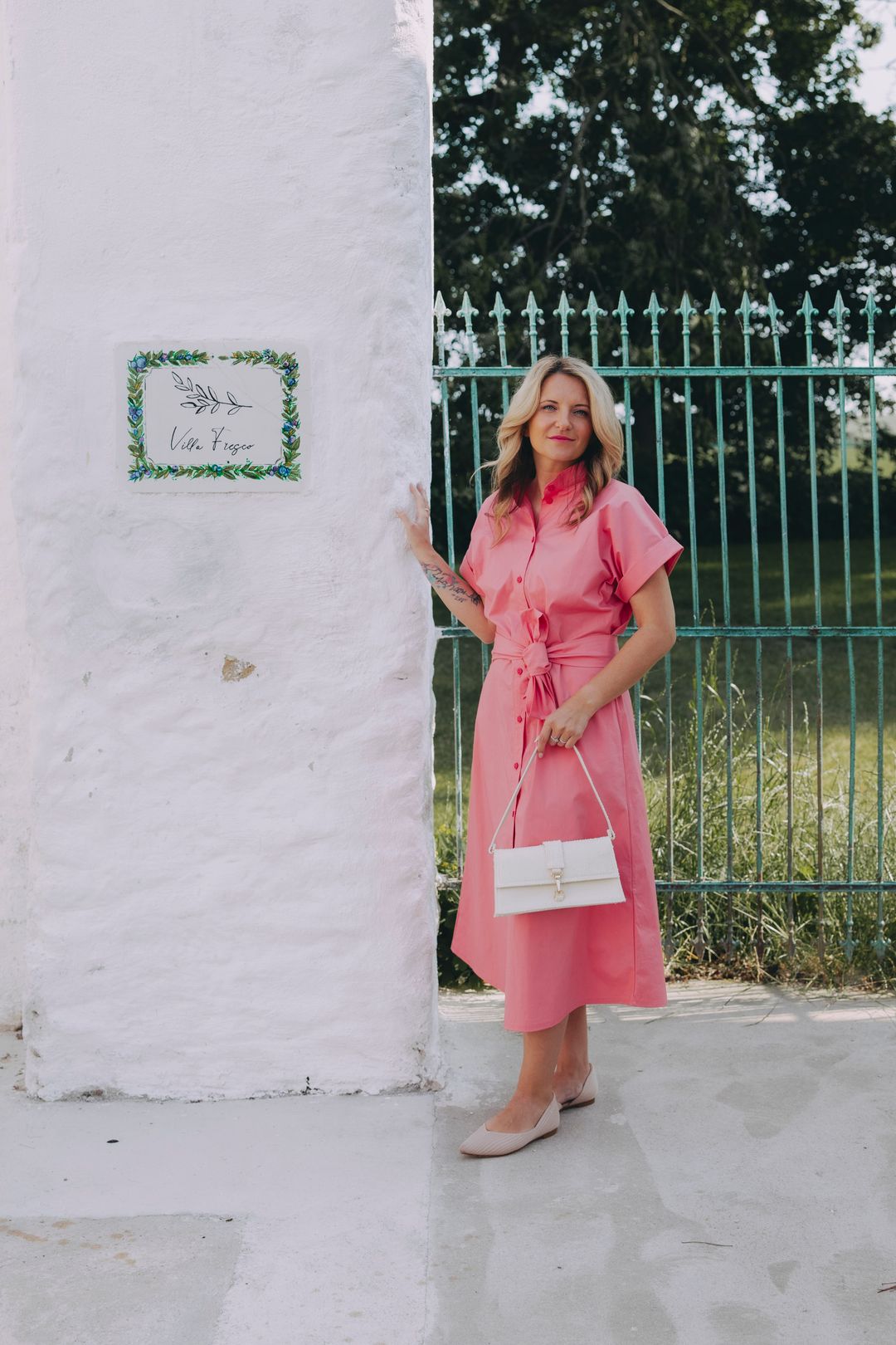 - Rukávy: Jejich ohrnuté konce dodávají šatům lehce ležérní nádech.