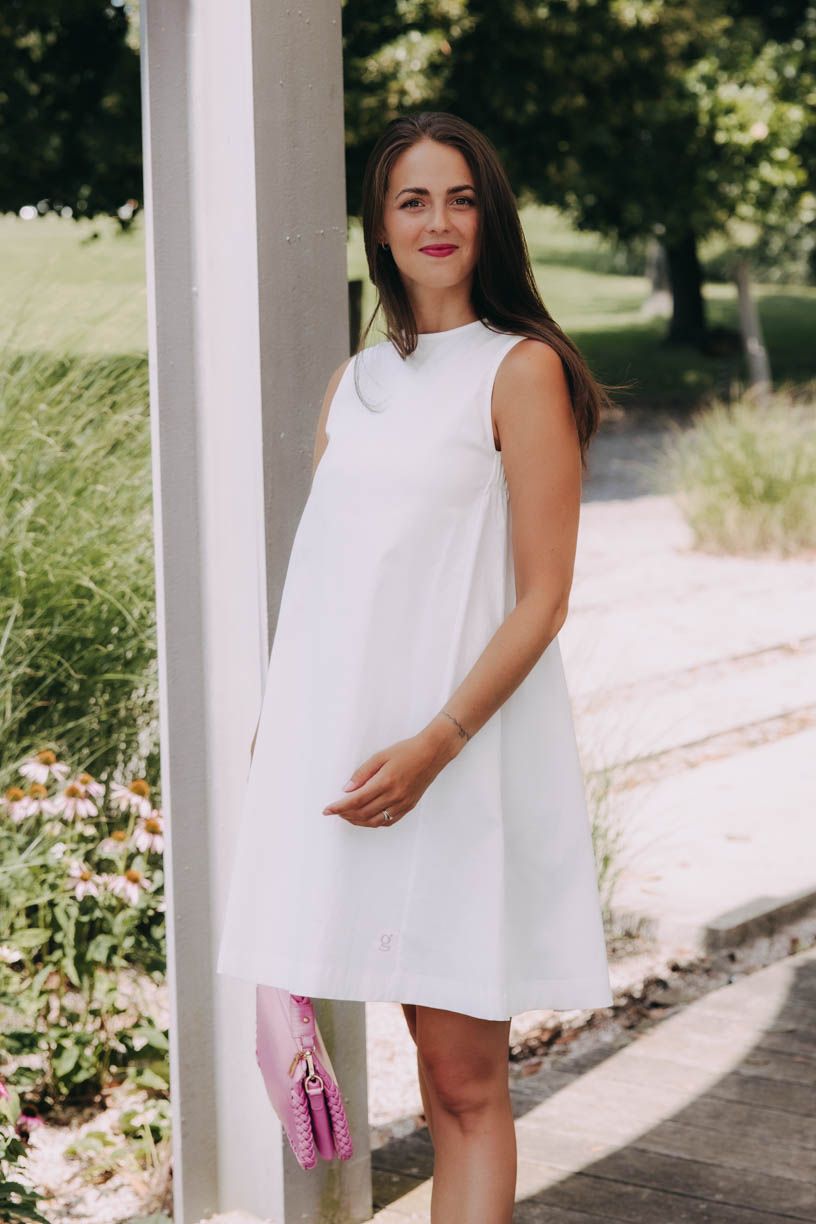 Rozšiřující se áčkový střih je krásně vzdušný a navíc elegantně schová i nějaké to poobědové bříško. A jestli zrovna pod srdcem nosíte svůj budoucí poklad, věřte, že tenhle skvost se bude krásně vyjímat i na tom těhotenském.