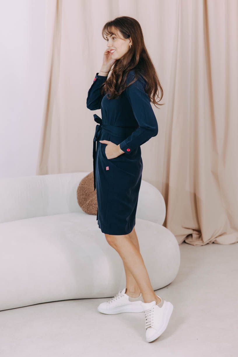 Musíte uznat, že naše šaty Thaba jsou opravdu povedený kousek do šatníku. Mix viskózy s příměsí polyesteru jsme spojili s pohodlným košilovým střihem, který s oblibou nosily i módní ikony Audrey Hepburn a Grace Kelly. Vsadíme se, že padnou do oka i vám. Na elegantní výstřih do V plynule navazuje řada knoflíků, které se táhnou po celé přední části. Krásně vypadají taktéž rukávy zakončené úzkou manžetou s knoflíčkem. Střih po kolena lichotí jakékoli postavě a s volně přiloženým páskem v barvě šatů si pěkně vytvarujete pas.