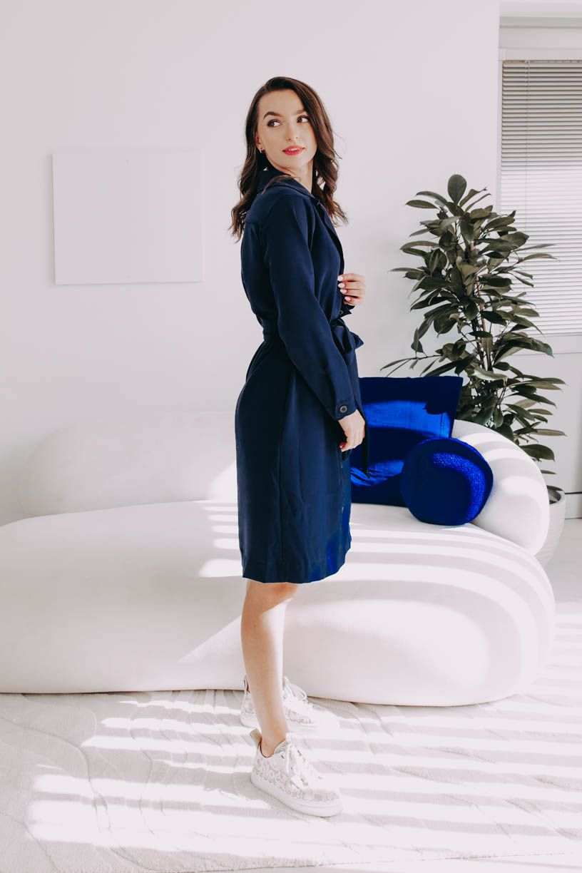 Musíte uznat, že naše šaty Thaba jsou opravdu povedený kousek do šatníku. Polyester jsme spojili s pohodlným košilovým střihem, který s oblibou nosily i módní ikony Audrey Hepburn a Grace Kelly. Vsadíme se, že padnou do oka i vám. Na elegantní výstřih do V plynule navazuje řada knoflíků, které se táhnou po celé přední části. Rukávy jsou vyhrnuty do úzké manžety, kterou si můžete stáhnout na předloktí. Střih po kolena lichotí jakékoli postavě a s volně přiloženým páskem v barvě šatů si pěkně vytvarujete pas.