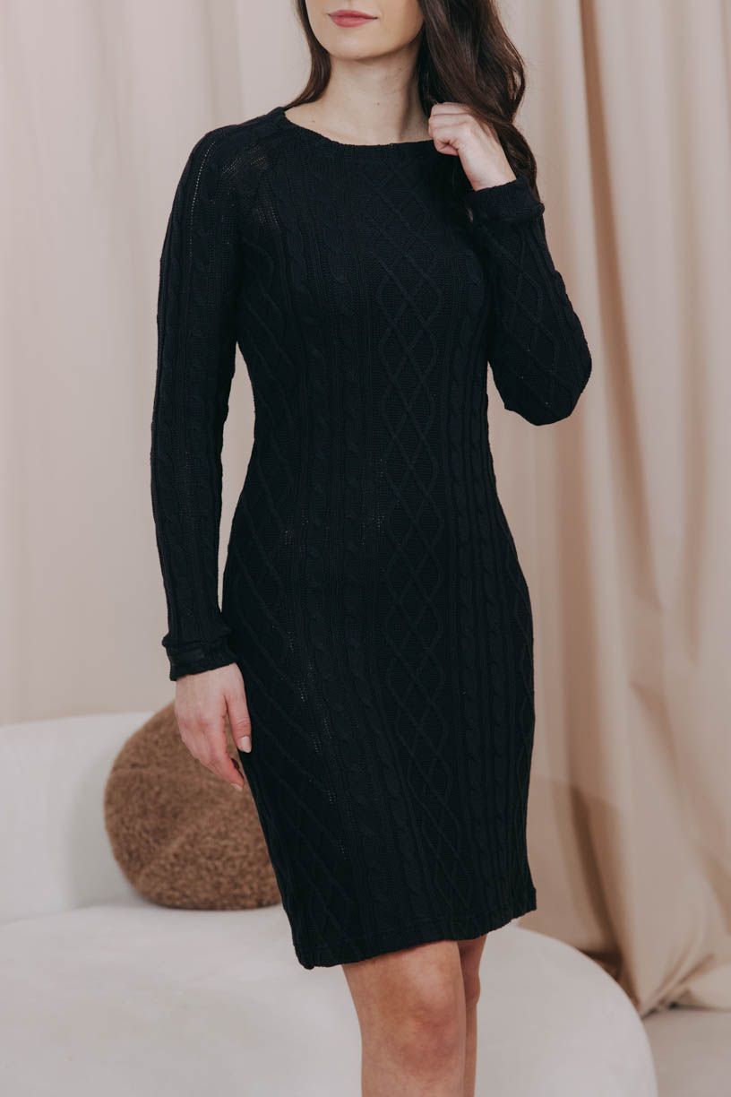 Příjemný a hřejivý úplet se svetrovým vzorem si zamilujete hned po prvním obléknutí. Dlouhé raglánové rukávy a vypasovaný střih působí elegantně a žensky. Dají se nosit „jen tak“, stejně jako s páskem. Délka těsně pod kolena je tak akorát, aby dala vyniknout třeba vašim oblíbeným kozačkám.