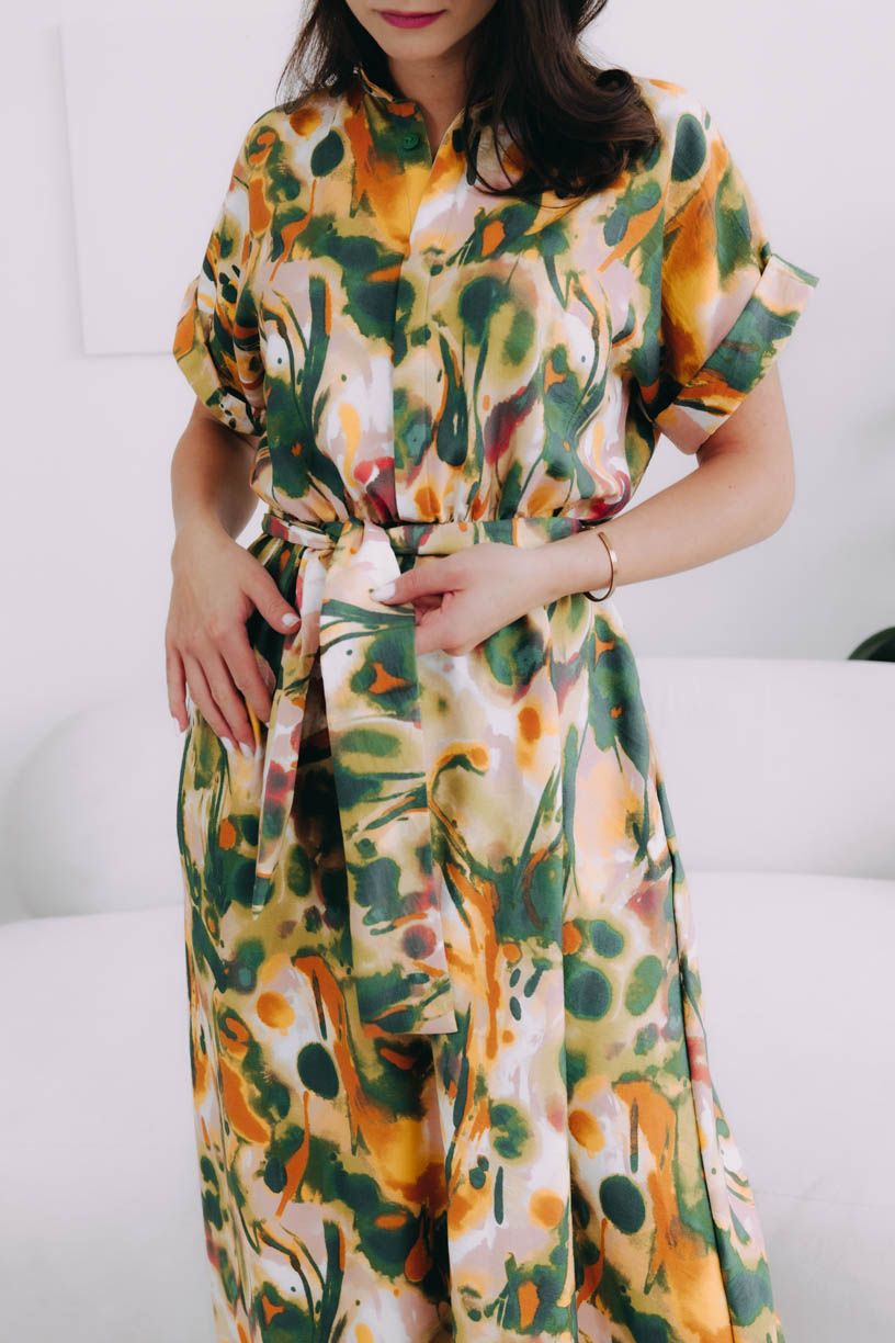 • Hra se stylem: Díky rafinovaně skrytým knoflíčkům ve vrchní části můžete mít šaty zapnuté až ke krku pro formálnější vzhled, nebo je nechat ležérně rozepnuté „na pohodu“. Decentně a zajímavě zakončené rukávky a zavazovací pásek na ozdobu dodají šatům osobitost a kouzlo.