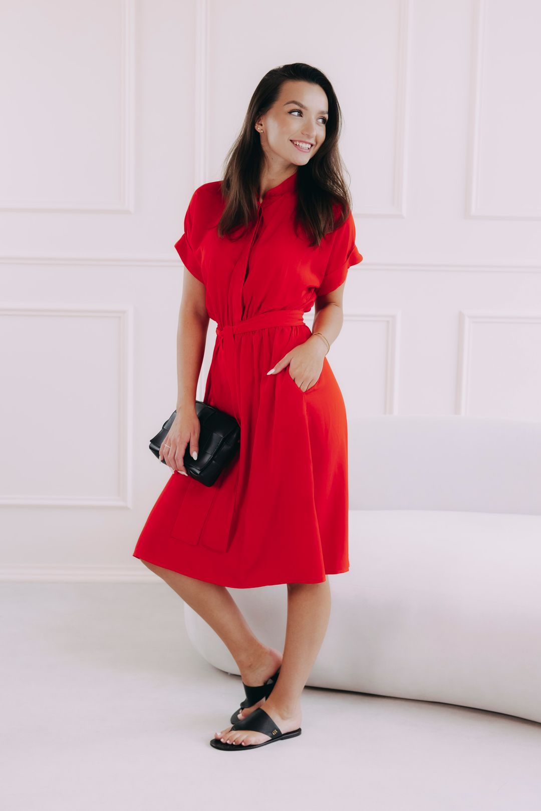- Barva – Červená: Nadčasová barva, která vyzařuje eleganci a je snadno kombinovatelná pro různé příležitosti.