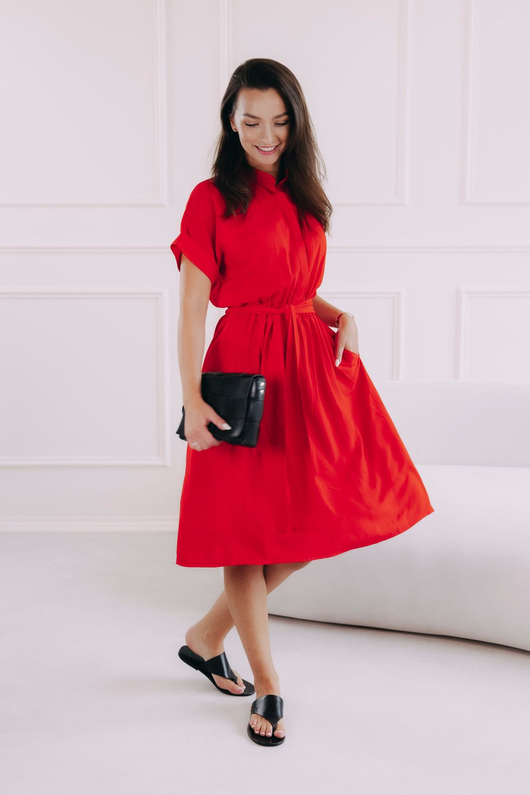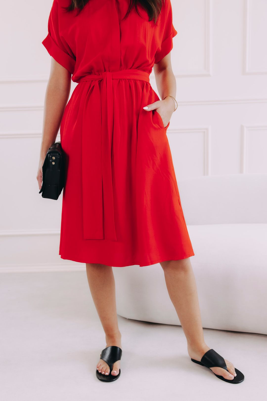 - Nastavitelný pas: Látkovým páskem vytvoříte hravou mašli, kterou zvýrazníte svou siluetu.